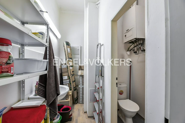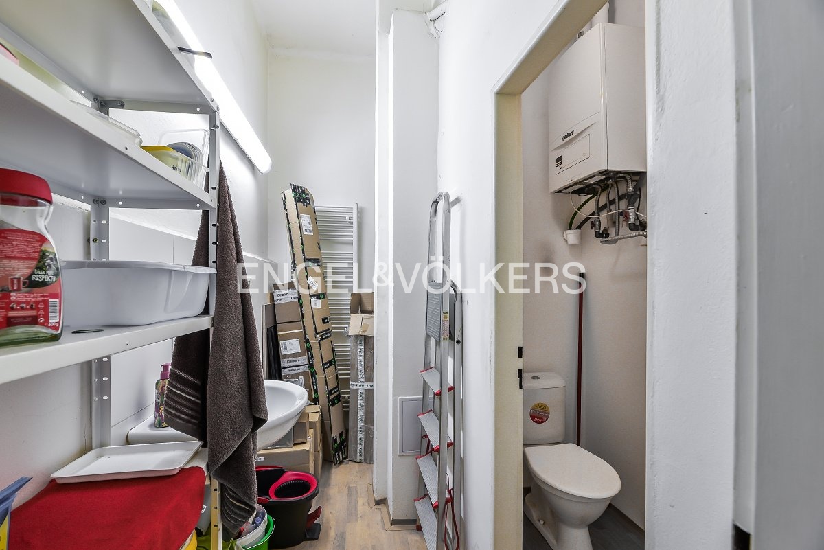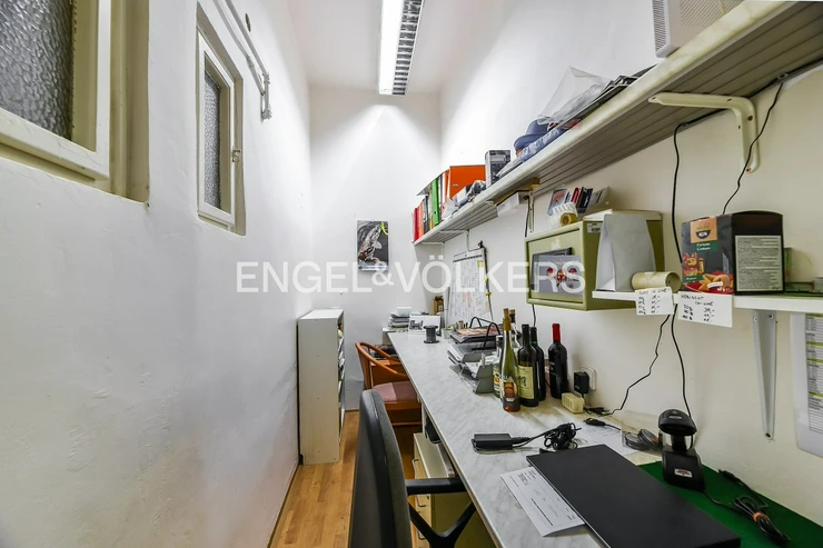 They consist of the main sales area, which forms the largest part of them, at the back there is a back office, a small warehouse, a toilet in a separate room and a sink. The ceilings have bright suspended ceilings with office lighting, the floor is wood laminate.