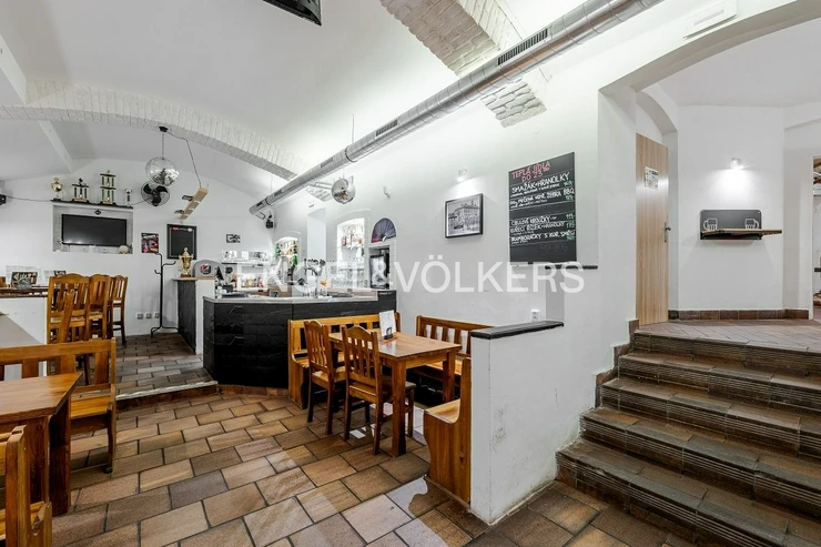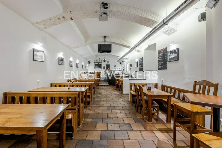 We offer for rent a furnished and renovated pub in Vršovice on Moskevská Street, in the immediate vicinity of the Ruská tram stop. The premises, approved as a restaurant, are located on the first basement floor of an apartment building. The entrance for customers is directly from the street, and the supply entrance through the building is secured with a gate.