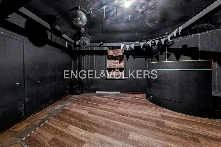 The premises are being rented out fully equipped, after renovation, with severance pay. The entrance is via a staircase down, through the entrance hall, where there are men's and women's toilets, and on the right-hand side is a corridor leading to the storage area and lounge. On the left is the entrance to the dining room with a bar and taproom, and at the rear of the premises is a dance floor with a DJ booth. The dance floor area is soundproofed, and there are offices above the space on the first floor, so the operation will not disturb the residents of the building.