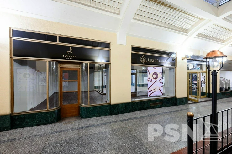 We offer a compact retail unit of 40 m² with a shopfront, located in the passage of the Art Nouveau building U Nováků on Vodičkova Street. The space is suitable for retail or services and benefits from the high footfall of this prestigious location near Wenceslas Square.