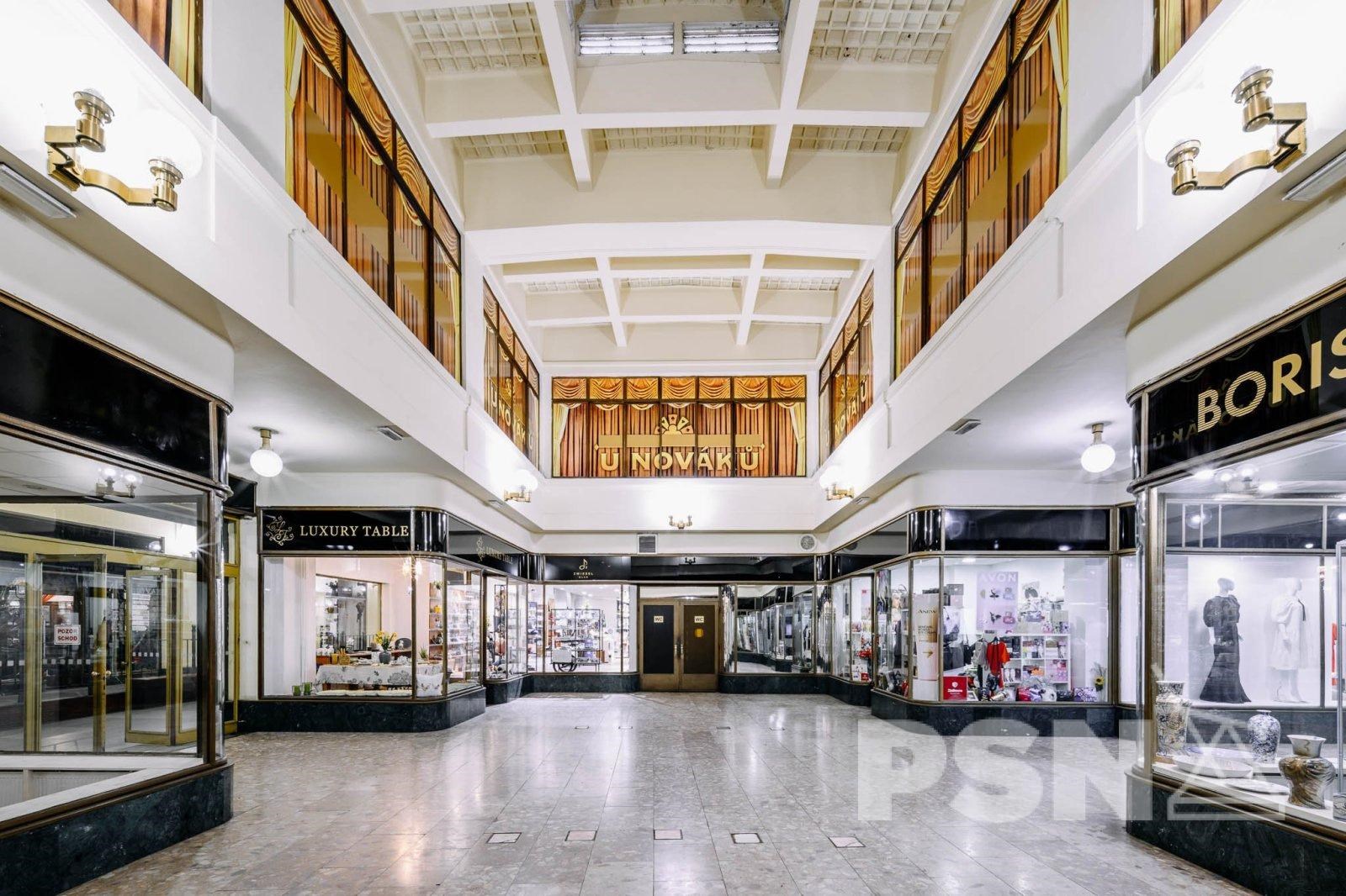 We offer a compact retail unit of 15 m² with a shopfront, located in the passage of the Art Nouveau building U Nováků on Vodičkova Street. The space is suitable for retail or services and benefits from the high footfall of this prestigious location near Wenceslas Square.