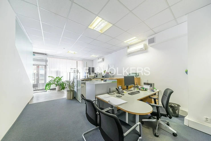 The premises are located on the ground floor with direct access from the street and large glass storefront windows, ensuring excellent visibility. The total area of the ground floor is 65 sqm and is fully wheelchair accessible.