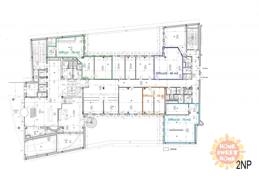 The premises are air-conditioned, common areas on the floor have a kitchenette, shower, toilets and quiet terraces in the courtyard of selected units. The price for parking is 6,000,- + VAT and there is a possibility of renting 4 parking spaces.