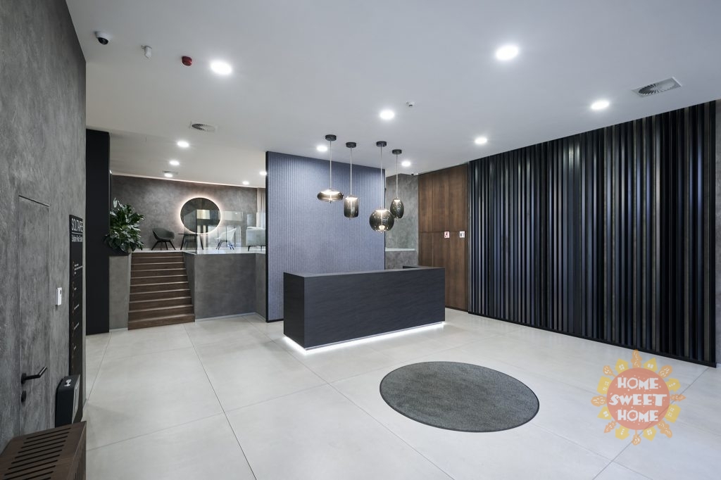 The building has representative common areas, reception or 24/7 security, access to magnetic cards, fast internet with optical connection and parking.