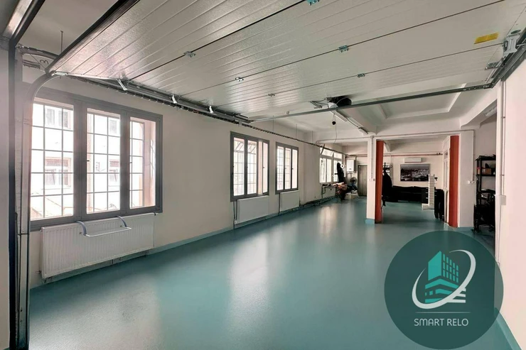Prostorný a světlý komerční prostor ideální pro kancelář, showroom, dílnu nebo sklad. Prostor se nachází v přízemí s pohodlným vjezdem přes automatická vrata a vykládací rampu.