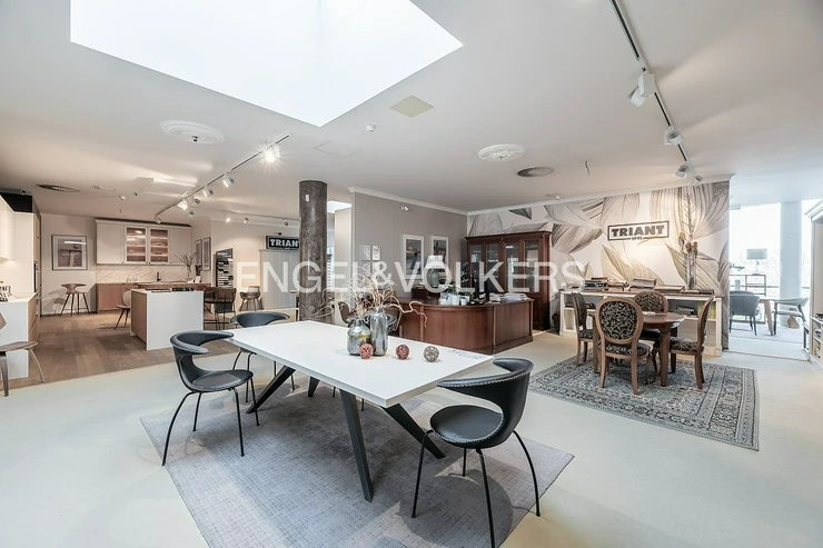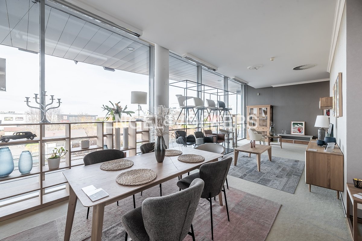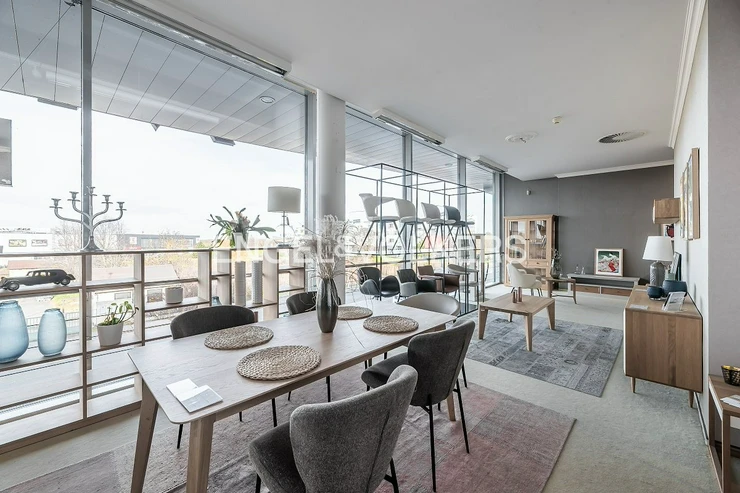 This 171 m² non-residential space in the MoDo Průhonice interior design centre is ideal as a retail unit, showroom, goods distribution centre, or office. The space is also suitable for light manufacturing. There is a large, barrier-free main room measuring 171 m² with shared facilities – a kitchenette and toilets. The main advantage is the strategic location of the building with excellent transport accessibility.