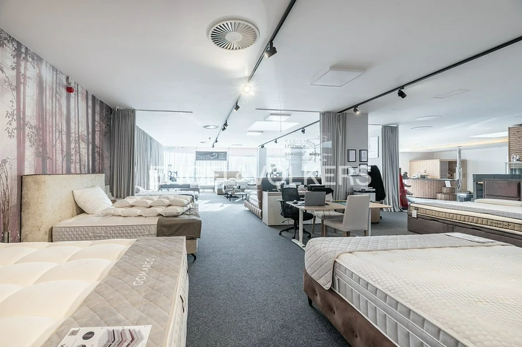 This 171 m² commercial space in the MoDo Průhonice interior design centre is ideal as a retail unit, showroom, goods distribution centre, or office. It features a large 171 m² main room with shared facilities—a kitchenette and restrooms. The main advantage is the building's strategic location with excellent transport links.