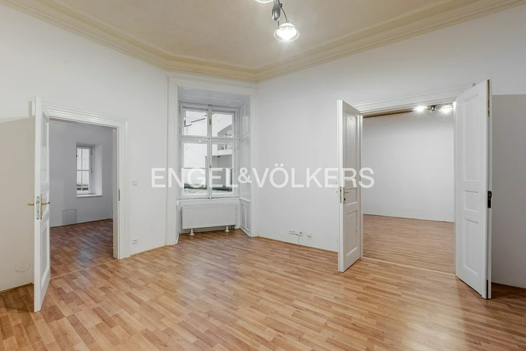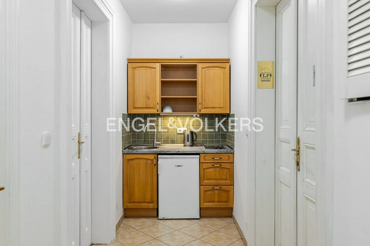 The space consists of three rooms, two of which are separate, allowing for variable arrangements and separation of individual work areas. The interior is in very good condition, and the double wooden windows create a pleasant atmosphere. The facilities also include a shared kitchen and toilets, which are located in the common areas on the floor. There is also a local gas boiler, a stable internet connection, and security is ensured by a camera system in the building. The office is a quiet and representative workplace in one of the most sought-after parts of the city centre.