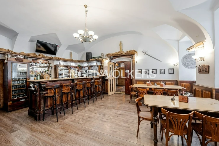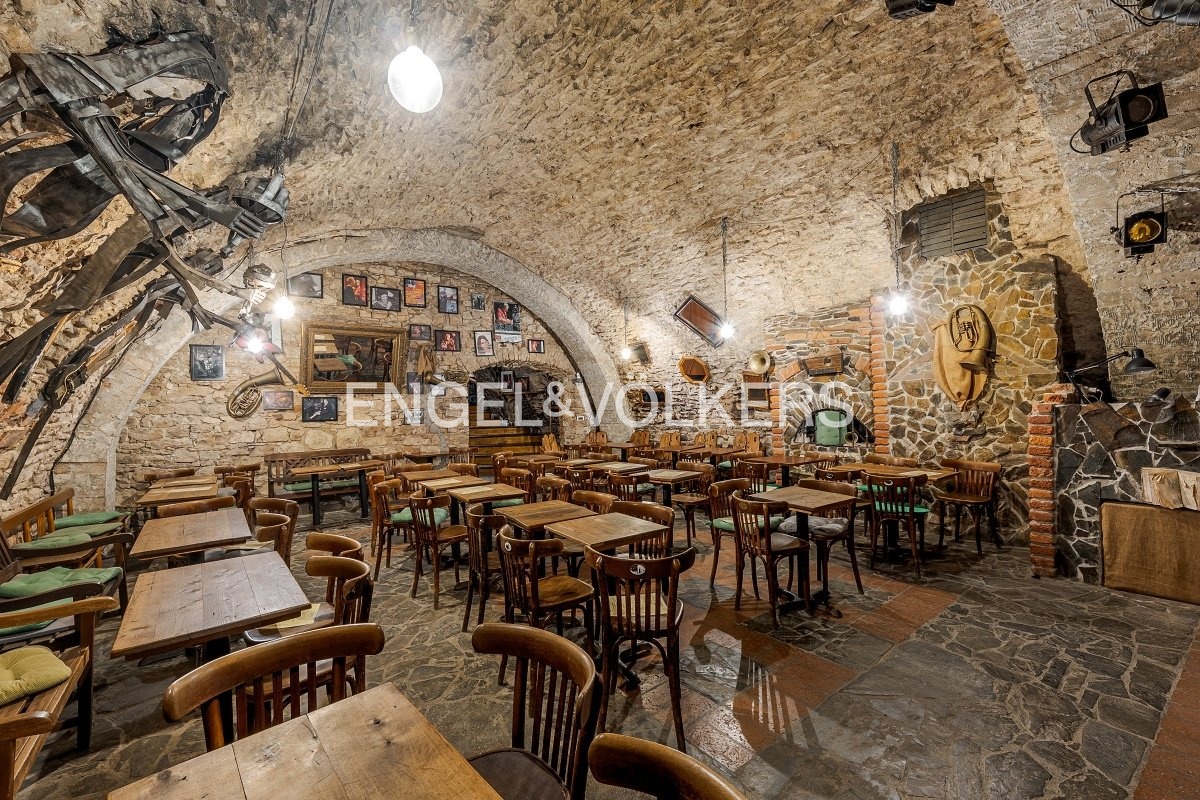 Also included in the offer is a separate jazz bar for 70 people on the 1st basement floor with an entrance from Týnská street. The bar has a massive wooden staircase, a bar at the entrance, two rooms, separate toilets, and a podium for bands. Stone vaults and a stone floor complete the atmosphere. These premises are also offered completely equipped.