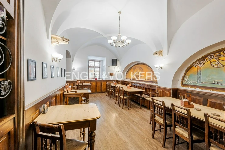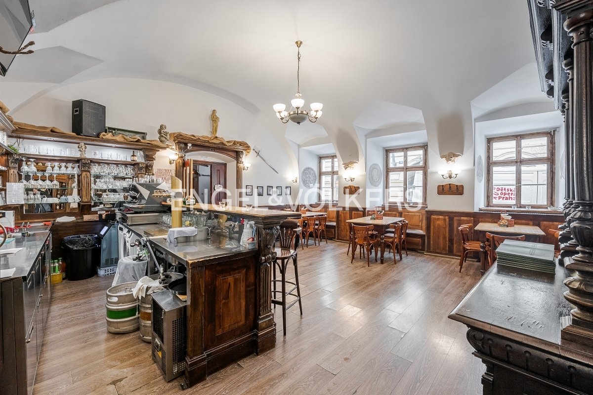 A restaurant with a jazz bar in the Old Town in Prague is ready for immediate rent. This is an established gastronomic operation in a tourist-frequented location just a few steps from the Old Town Square, which has been successfully operating for 15 years. The premises have direct street access and are located in the attractive part of Týnská street. The restaurant with a capacity of 70 people has a bar at the entrance, two spacious rooms, a fully equipped kitchen with final inspection approval for gastronomy and hot cuisine, facilities for employees, and separate toilets. The interior is completed by cross vaults, massive wooden elements, and windows facing Týnská street. Also included are air conditioning and laminate flooring. The premises are handed over fully equipped.
