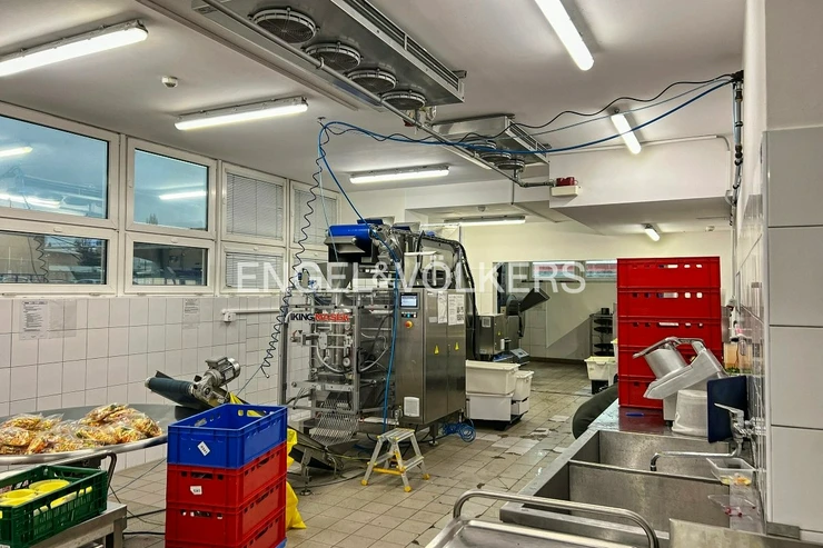 Available for rent from September 1, 2026, we offer production space with an area of approximately 600 m² on the ground floor of a multifunctional building in Prague - Uhříněves with excellent transport accessibility. The space itself meets the highest standards for catering operations. Standard office lighting is used, providing sufficient intensity for production activities, and plastic windows ensure natural daylight. Part of the space has room for refrigerated boxes and includes a fully equipped kitchen. The production area has refrigerated boxes and ceiling cooling, which can be purchased from the previous tenant by agreement. To ensure optimal working conditions, central air conditioning is installed, and for maximum safety, there is an electronic fire alarm system.