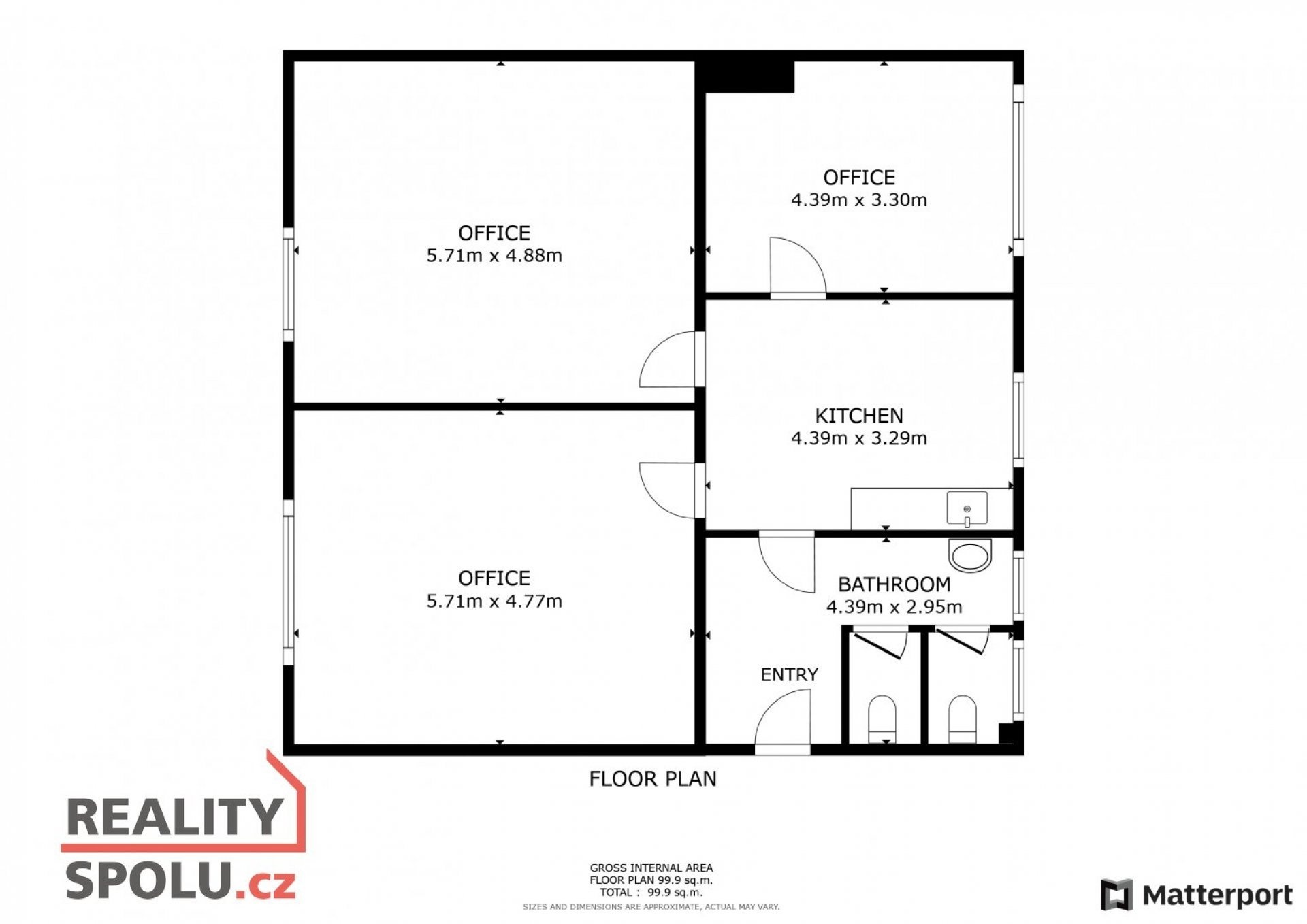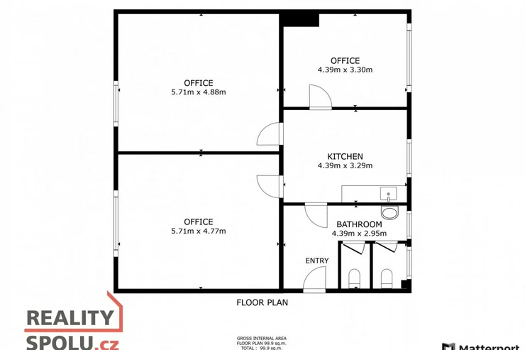 Celková užitná plocha objektu činí přibližně 584 m², lze pronajmout pouze kancelářské prostory nebo i celek.