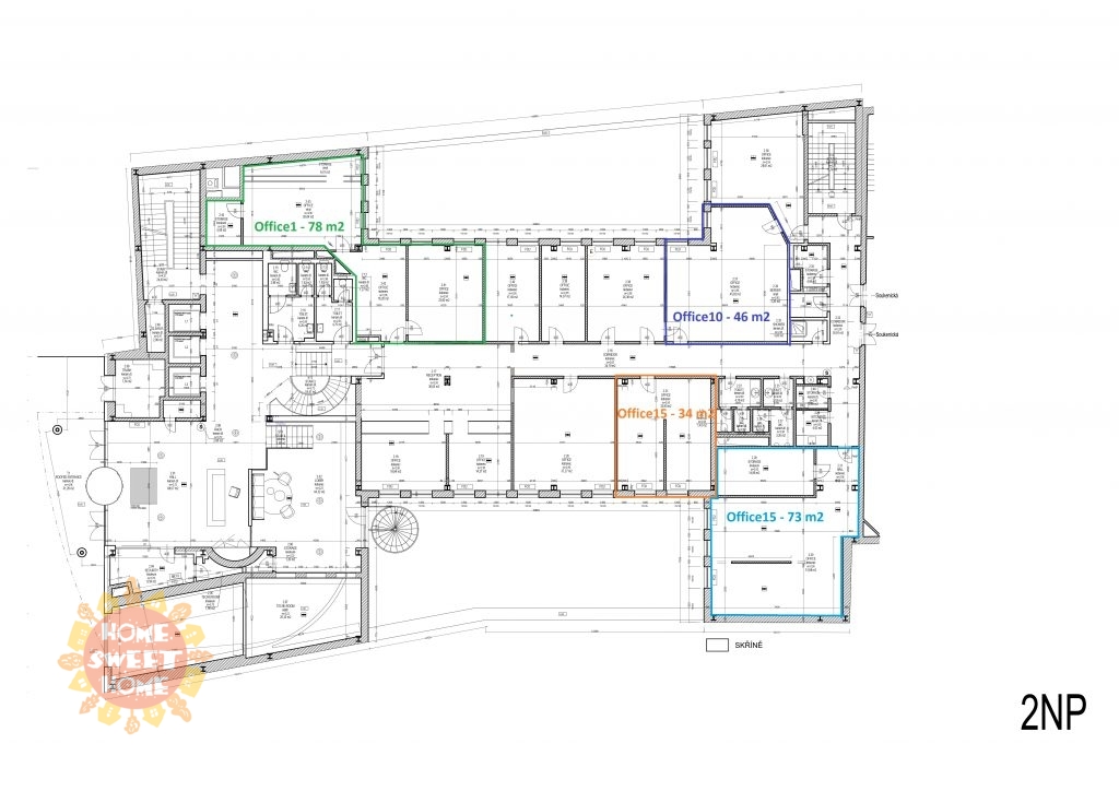 The premises are air-conditioned, common areas on the floor have a kitchenette, shower, toilets and quiet terraces in the courtyard of selected units. The price for parking is 6,000,- + VAT and there is a possibility of renting 4 parking spaces.