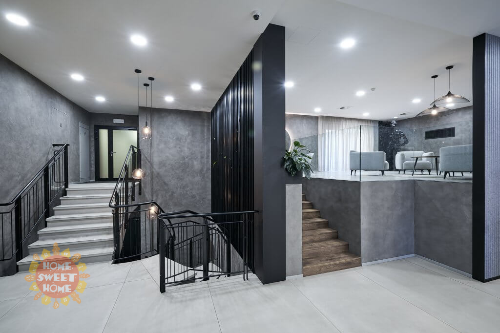 The building has representative common areas, reception or 24/7 security, access to magnetic cards, fast internet with optical connection and parking.