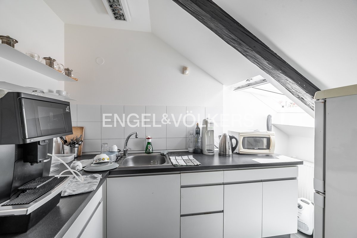 The entrance to the premises is through the front door and staircase, and the offices are located on the fourth floor in the attic space.