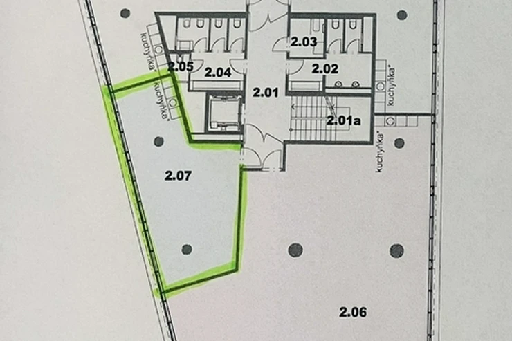 The premises are currently under construction and will be available from March. This unique project offers a modern and inspiring working environment close to Dvorecký Bridge, which will soon connect both banks of the Vltava River, thus simplifying access to the entire complex. The building has a 24-hour reception and security. Tenants can use a private fitness center with a fitness trainer directly in the building. Covered parking spaces can be rented for a fee (€115/month), outdoor parking spaces (€85/month). The starting rental price is €6.9/m2 for the first 9 months, and from the 10th month onwards, the full rental price is set at €13.99/m2. Transport accessibility - 2 minutes to the bus and tram station.