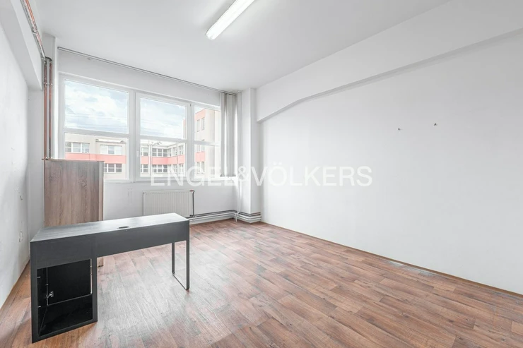 We are now offering office space for rent in Hloubětín. Access to the building is secured by a reception desk with security. The office is located on the 1st floor and is accessible from the central hallway of the building. The total area of the office is 25 m², and the space is equipped with plastic windows. The building has an elevator, and shared toilets are also available.