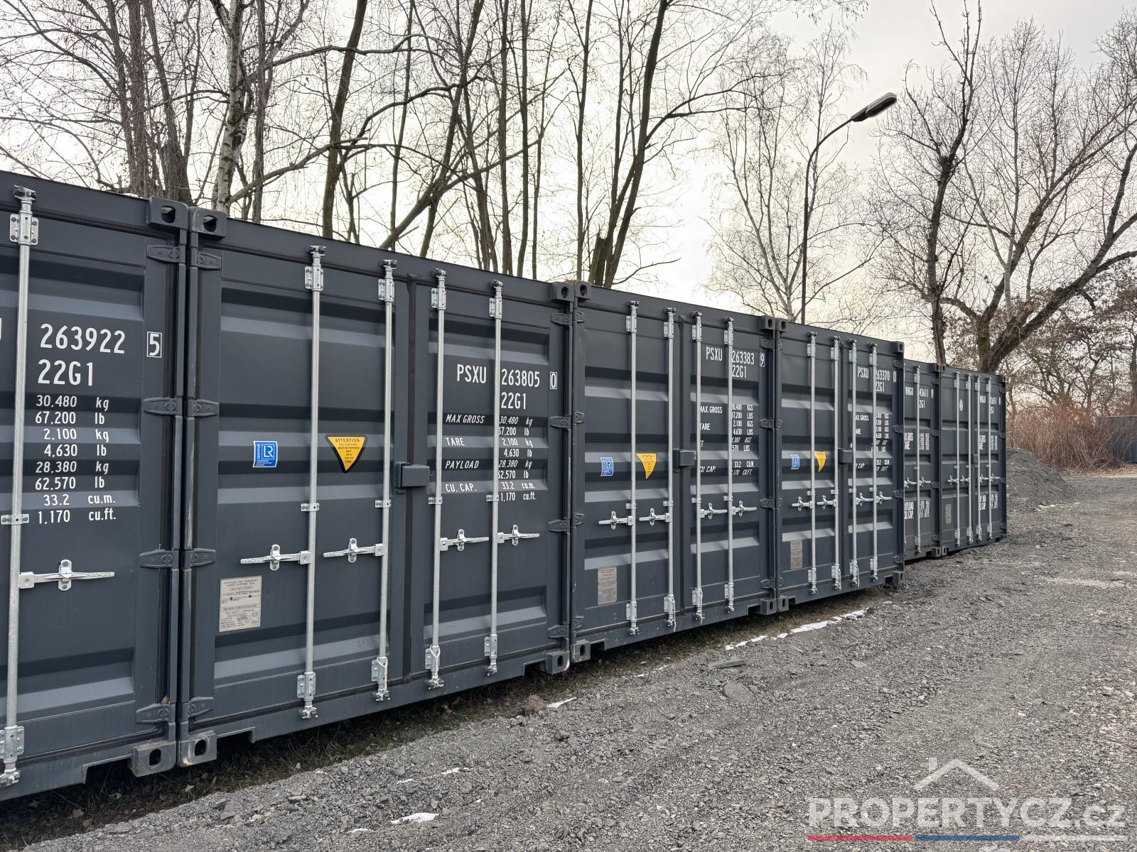 Kontejnery jsou umístěné přímo na zemi na zpevněném podloží pro pohodovou vykládku z auta. Kontejnery jsou nové, čisté a suché, vyrobené z Cortex oceli určené pro námořní přepravu.