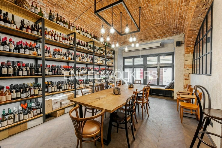 Newly available for rent is an exceptional non-residential space with a total area of 77 sqm, located at the prestigious address Ve Smečkách in Prague 1. This wine bar is designed in a unique architectural style that builds on the contrast between raw brick vaults and modern designer equipment. The heart of the entire establishment is a generous main hall, with the premises unified by impressive lighting and solid wooden furniture. For guests requiring privacy, a separate lounge is available, ideal for private tastings or business meetings. The operational facilities consist of a practically designed bar.