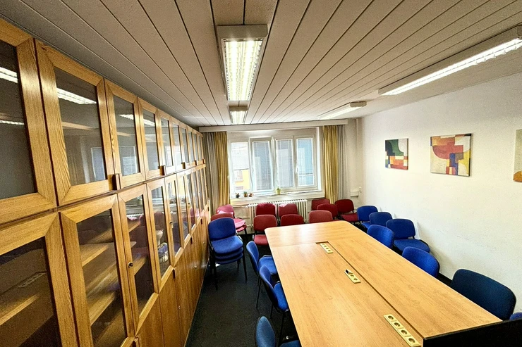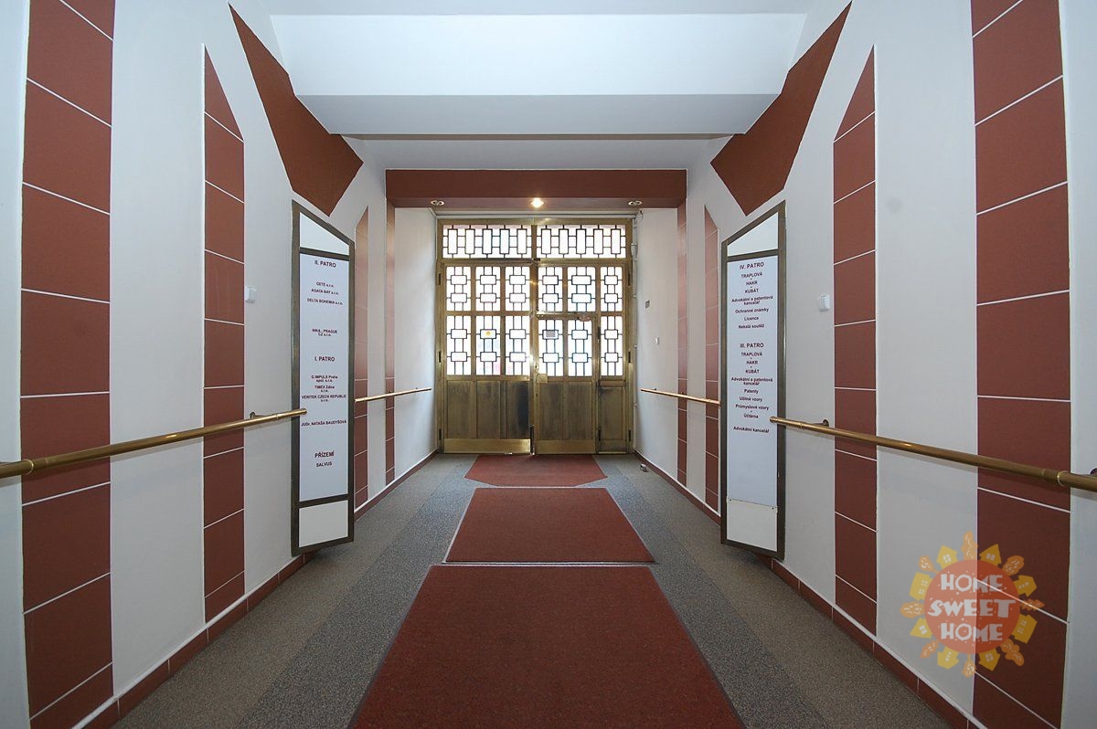 We offer several parking spaces for visitors in the courtyard behind the main building. Facilities in all offices include weighted carpets, new euro windows with blinds and fluorescent lighting, telephone exchange with unlimited phone lines, internet. There is a built-in kitchen and bathroom on each floor, with 2 showers in the basement. The company logo can be placed on the information stands in front of the entrance to the main building. There is a possibility to rent several offices at the same time. Attractive location in the centre of Prague with excellent transport accessibility - 2 tram stops to metro "C" Vltavská. Available for rent from 1st of March 2026.