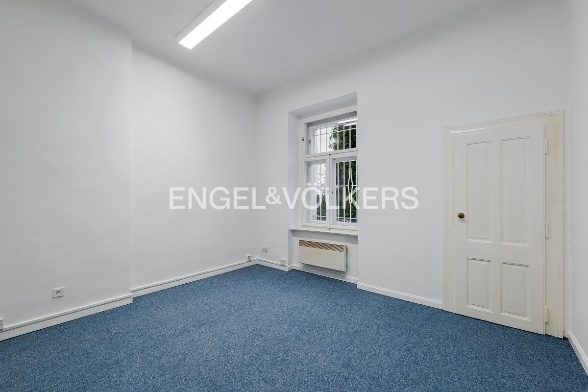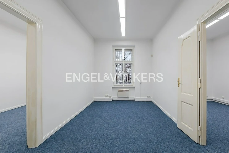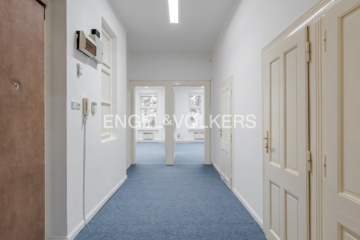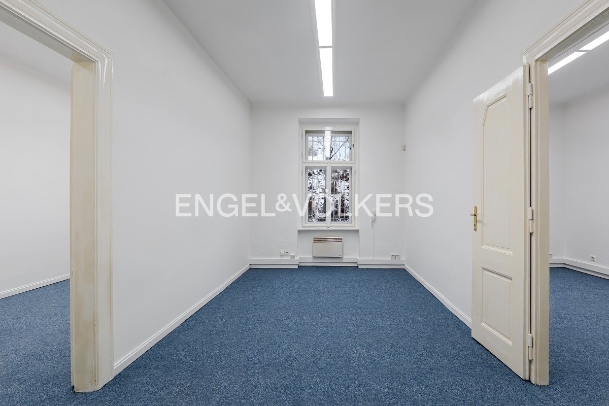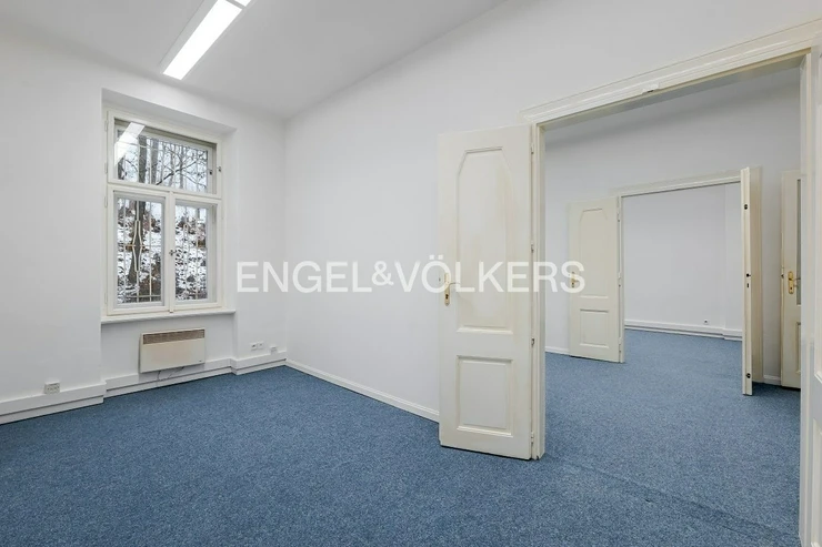 Spacious, unfurnished offices consisting of four rooms, a hallway, and a toilet with a floor area of 89 sqm are located on the ground floor of a brick building in the attractive area of Prague 5 – Smíchov. There is a new heavy-duty carpet in the office. This building was built at the beginning of the 20th century in the Art Nouveau style and recently underwent a sensitive reconstruction. Currently, it is used as a multifunctional building for administrative purposes and housing. The property is located in the wider center of Prague, near the newly developed Nový Smíchov area at the foot of the Malvazinky residential district. It is easily accessible by both public transport and car from the center and city ring roads. In the immediate vicinity of the building, there are two city parks, a school, restaurants, residential and administrative buildings, shops, services, and banks. The Anděl metro station (line B) is about a 5-minute walk from the building.