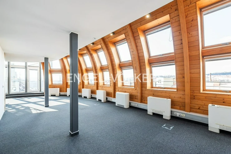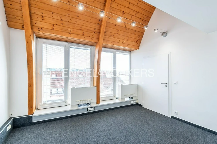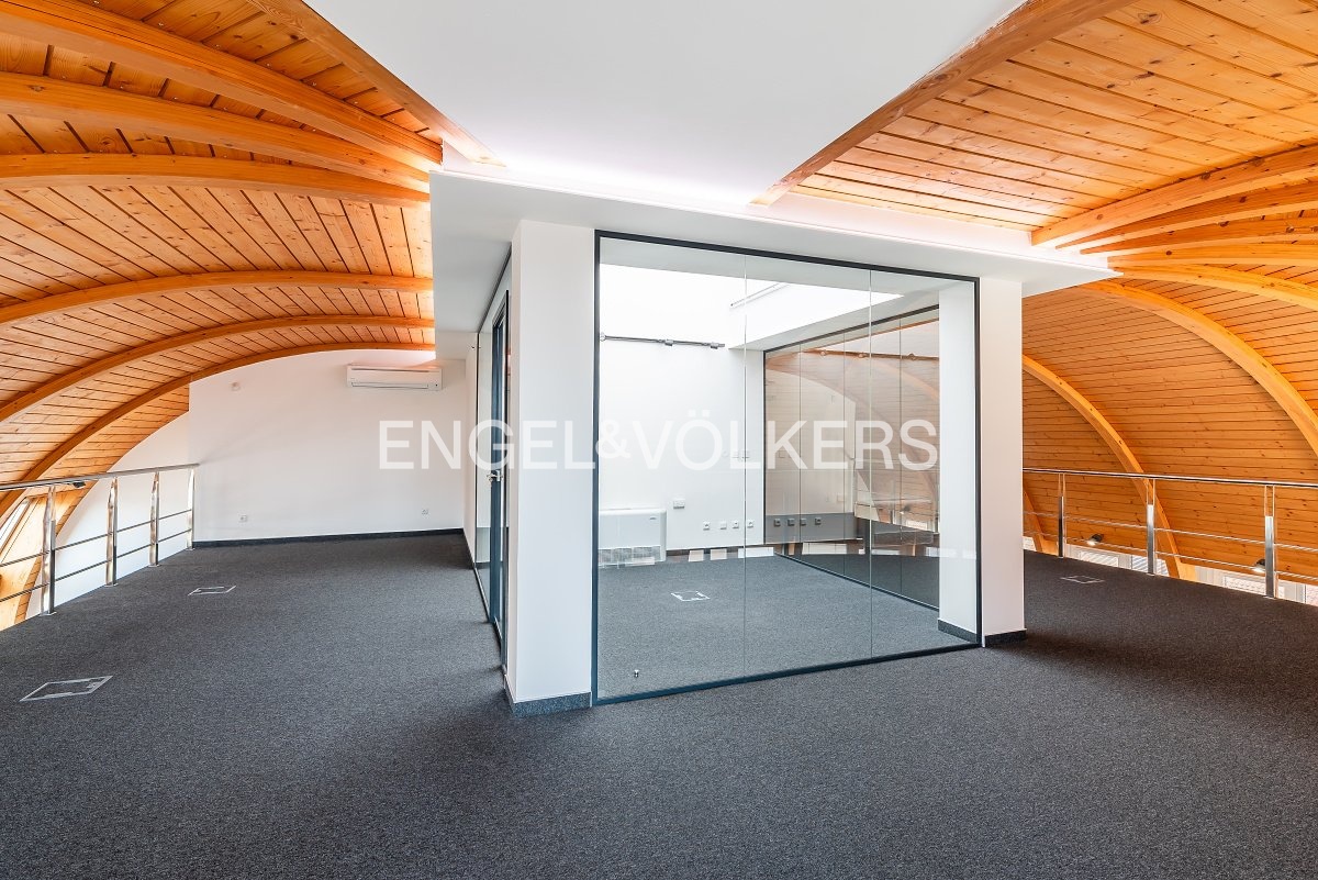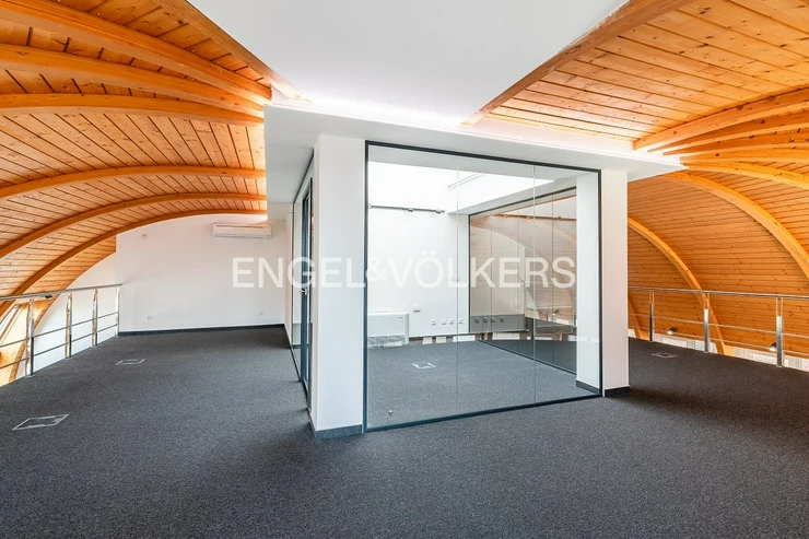 The layout includes several separate rooms that can be flexibly adapted to the tenant's needs. Some parts are glazed, which naturally connect the interior and ensure plenty of daylight. In combination with large windows, this creates an inspiring environment suitable for both work and meetings.