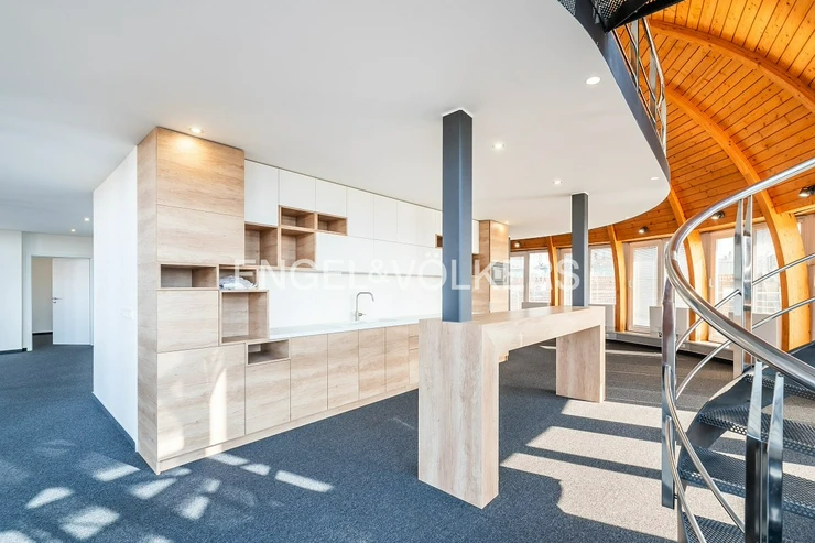 This space represents a harmonious combination of unusual architecture, practicality, and light—it is the ideal choice for those looking for a place with character and creative potential.