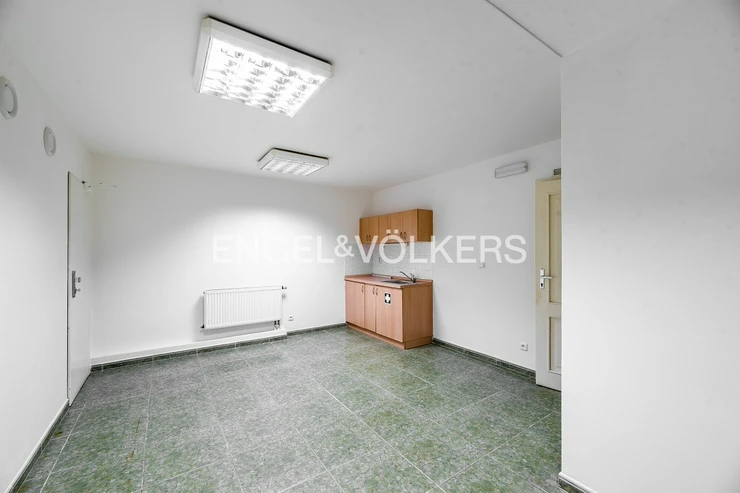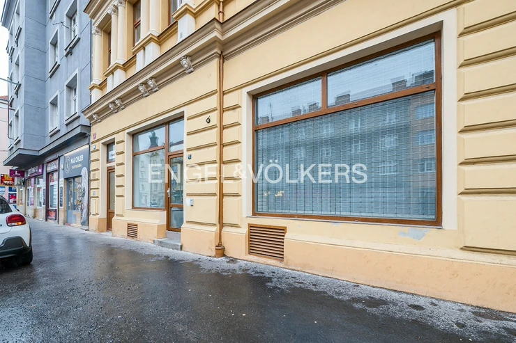 The premises are equipped with air conditioning and independent air exchange ventilation, as well as a secure vault room. The entrance to the unit is directly from Bělohorská Street.