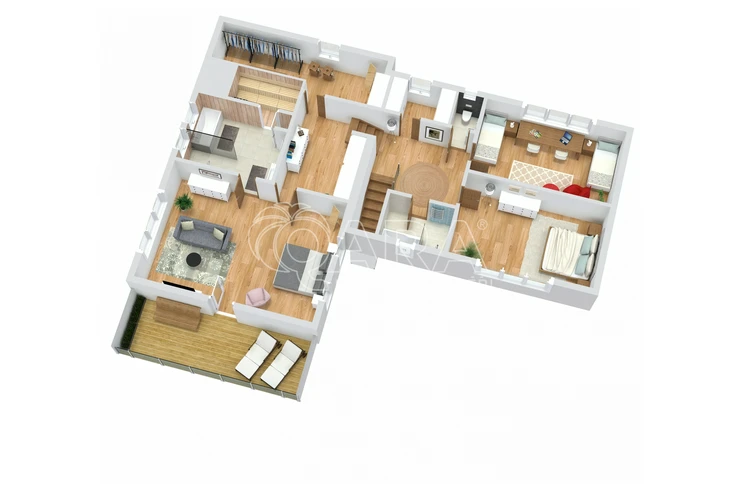 The basement of the house includes a laundry room, two technical rooms, and storage spaces.