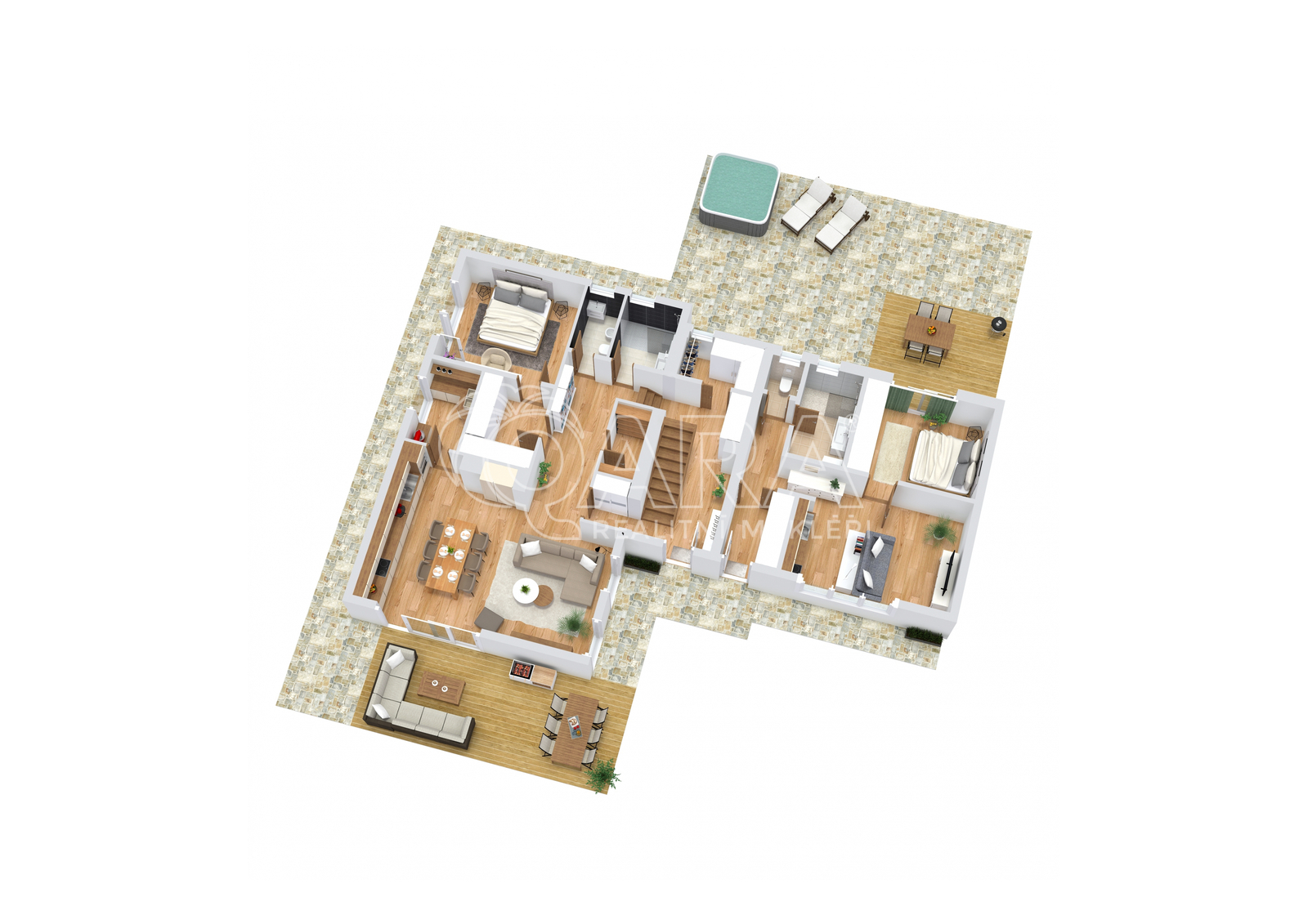 The villa is finished to a high standard, featuring ash wood flooring, glass railings, and air conditioning in all living areas. The house is further equipped with photovoltaic panels, a central vacuum system, a security camera system, and an automatic irrigation system in the garden. Operating costs are very low.