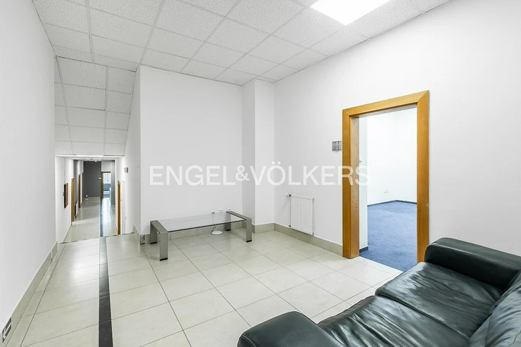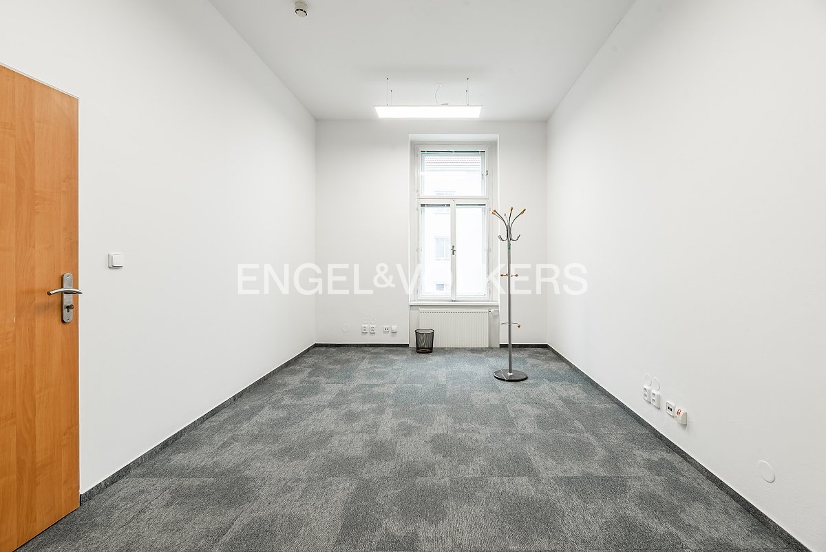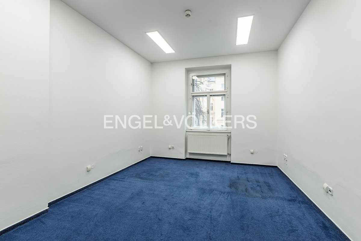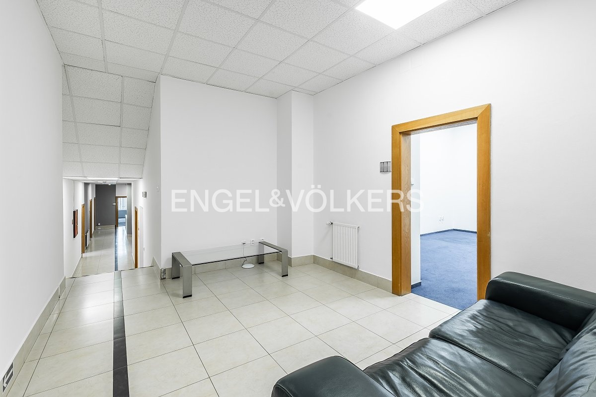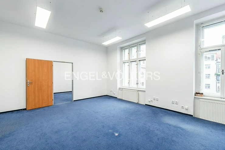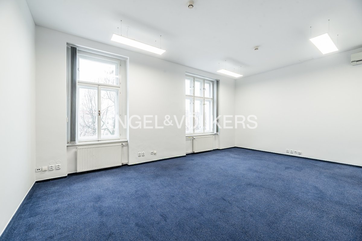 These prestigious office premises with a total area of 450,51 m², including a share of the common areas, are located in a renovated office building in an attractive part of Žižkov. The space is designed as two interconnected rooms, which can be used, for example, as a combination of work offices or an office and a smaller meeting room. Thanks to the casement windows, the interior has a bright and pleasant feel and offers plenty of daylight.