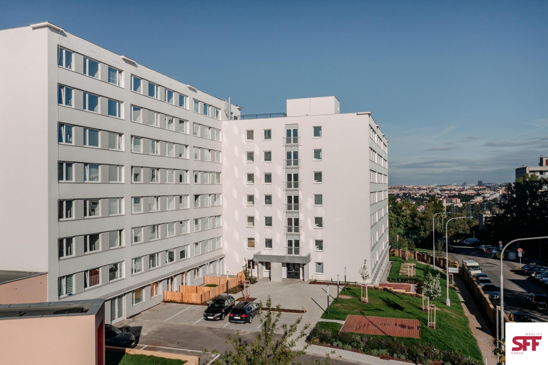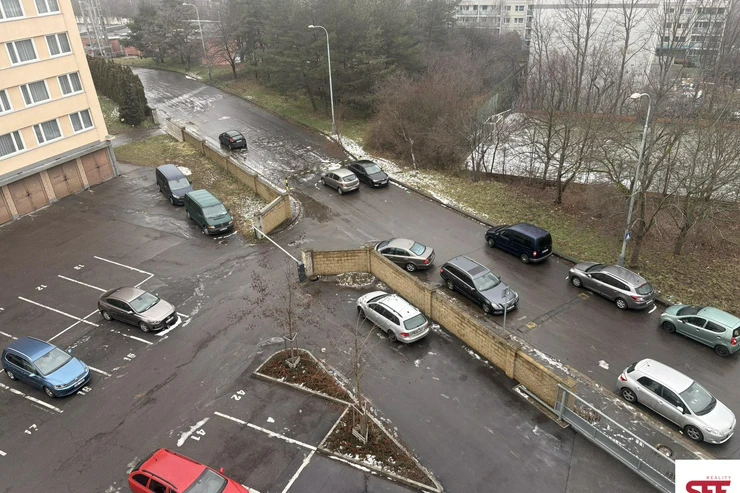 The apartment comes with a basement storage unit, a separate storage room, and a secured parking space next to the building. A major advantage is the pleasant views of Prague.