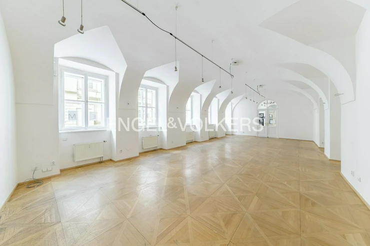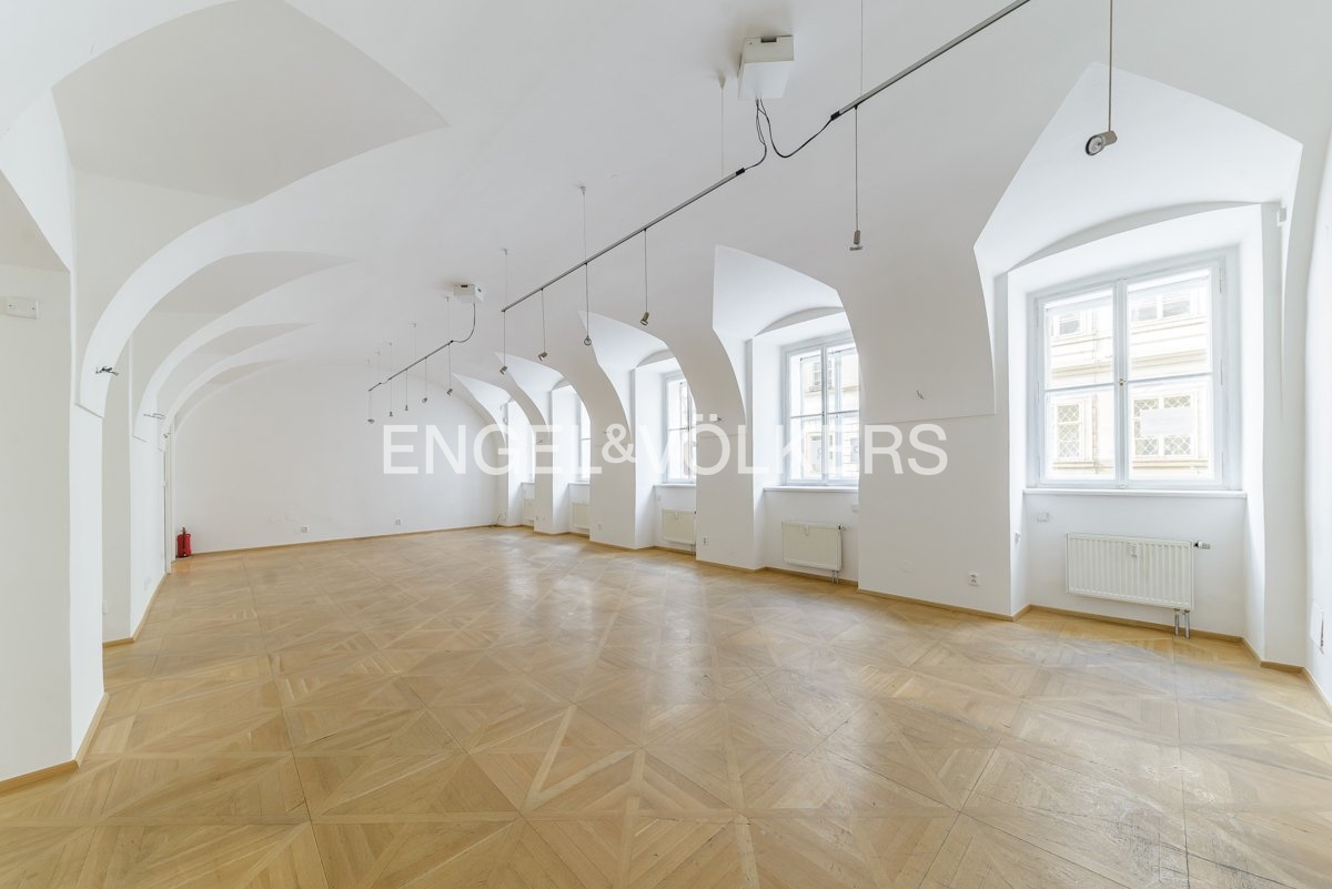 An office in the heart of Malá Strana offers 115 sqm on the ground floor of a historical building. The office can be used as a showroom, but also as a café or a shop. The room with windows facing the street has a size of 63 sqm. Private facilities, toilet. The office is easily accessible, with the Hellichova tram stop just a minute's walk from the building.