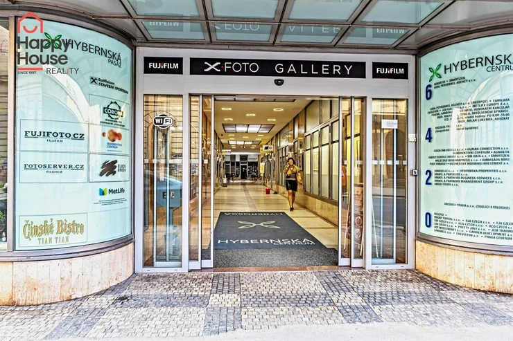 Nabízíme k pronájmu obchodní prostor v přízemní pasáži administrativní budovy Hybernská centrum v centru Prahy. Prostor je kolaudován jako kosmetický salón se společným zázemím. Nabízí obchod a společné zázemí o celkové rozloze 17,10 m2 (obchodní jednotka 16 m2 + podíl na společných WC 1,10 m2). Kompletně zasíťováno, voda/odpad v zadní části. Ústřední vytápění. Klimatizace. Dlažba. Výkladní skříně do pasáže. Rekonstrukce a rekolaudace možná. V budově je recepce a bezpečnostní služba 24/7. Telefon (objekt má vlastní telefonní ústřednu, počet linek bez omezení). Internet (optokabel od fi Dial Telecom nebo jiný dodavatel přes anténu na střeše nebo ADSL/VDSL připojení přes vlastní ústřednu). Telefonní a IT zásuvky jsou rozvedeny po celém patře v rámci standardu. Na pravidelný úklid je možno buď využít hlavního dodavatele (za poplatek) nebo vlastní úklidovou společnost. Možnost pronájmu garážového stání v suterénu budovy (od 4,200 Kč/měs + DPH).