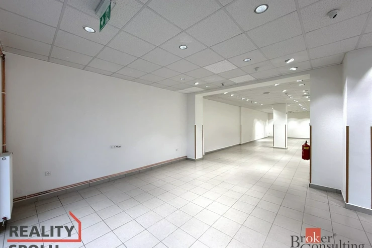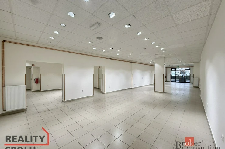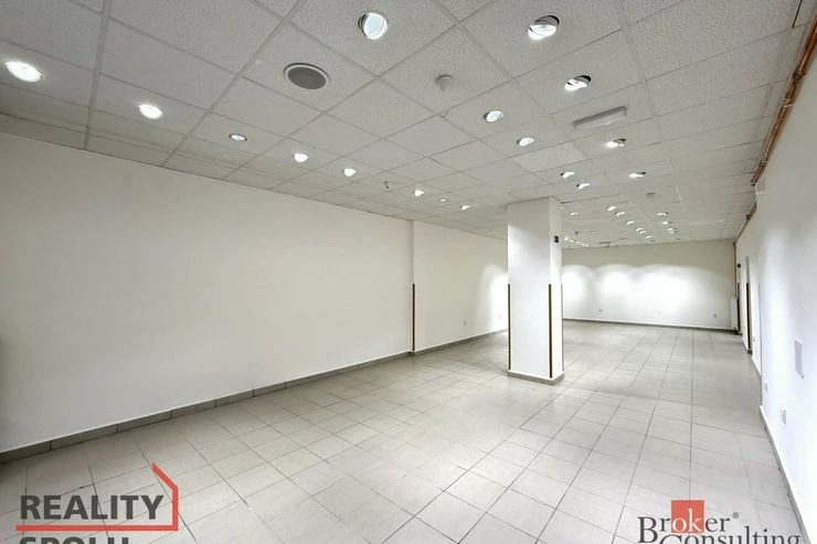 Dispozičně prostor nabízí cca 150 m² prodejní plochy a dalších přibližně 50 m² tvoří sklad, kancelář, chodba, WC a úklidová místnost.