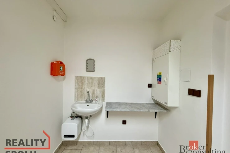 Prostor je čistý, vymalovaný a připravený k užívání. Je vybaven automatickými posuvnými vstupními dveřmi s odděleným vstupem a výstupem, kamerovým systémem, klimatizací a ústředním elektrickým vytápěním.