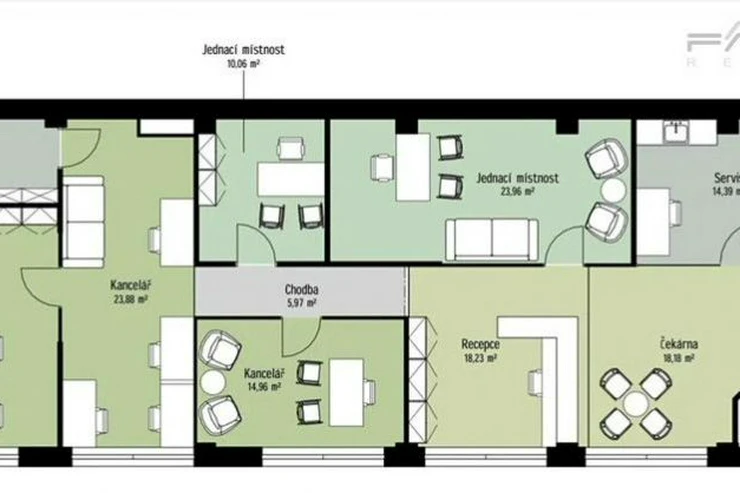 Are you looking for representative offices in the heart of Karlín that combine modern design with exceptional energy efficiency? We offer for rent or sublease a top-class space of 194 m located on the ground floor of an administrative building on the prestigious Sokolovská street. Thanks to the energy efficiency class B, you will not only get a prestigious headquarters, but also very economical operation for your business.