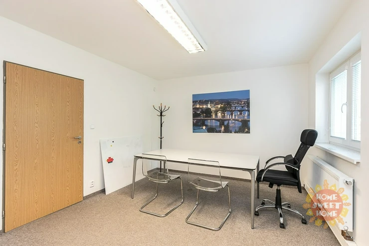 Prague, nice furnished office space 80 square meters is located in Prague 4 Michle. The premises are on the ground floor of brick house (built in 2011). There is also one parking space in front of the house in the street. There is a kitchenette with refrigerator and microwave. Bathroom with shower and toilet. Nearby tram and bus stops. 1 parking place is included.