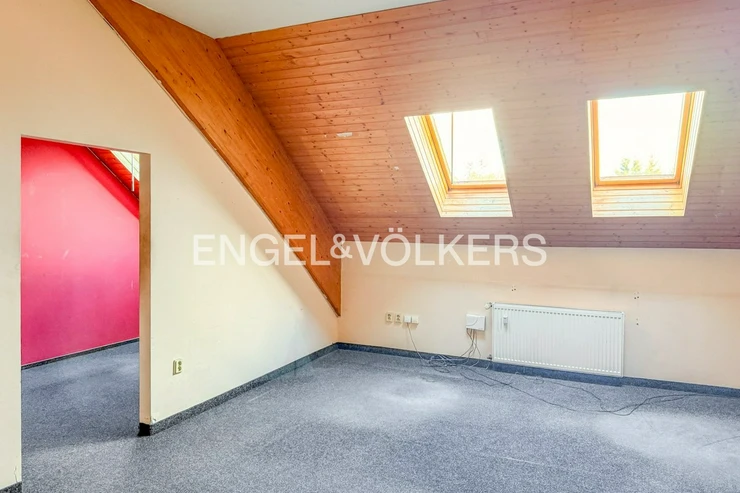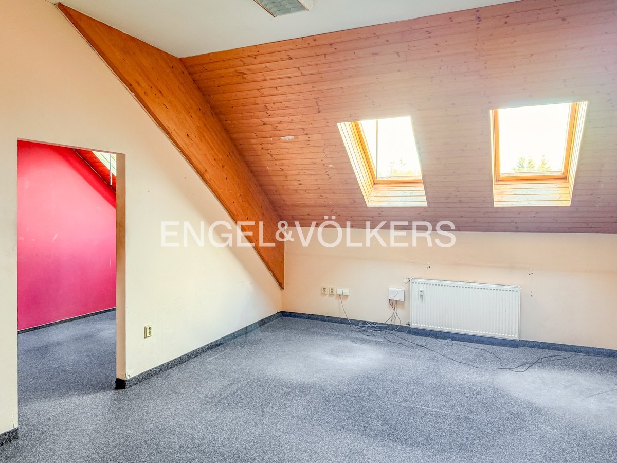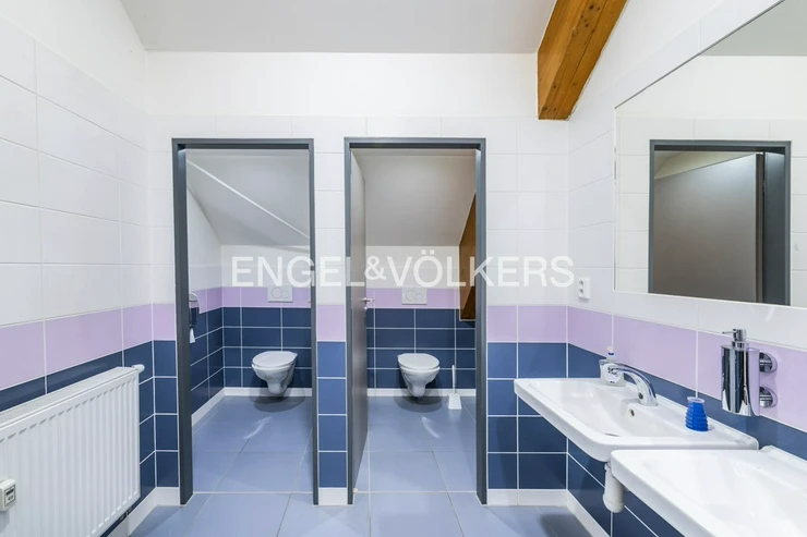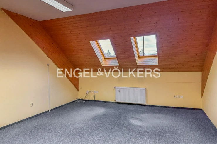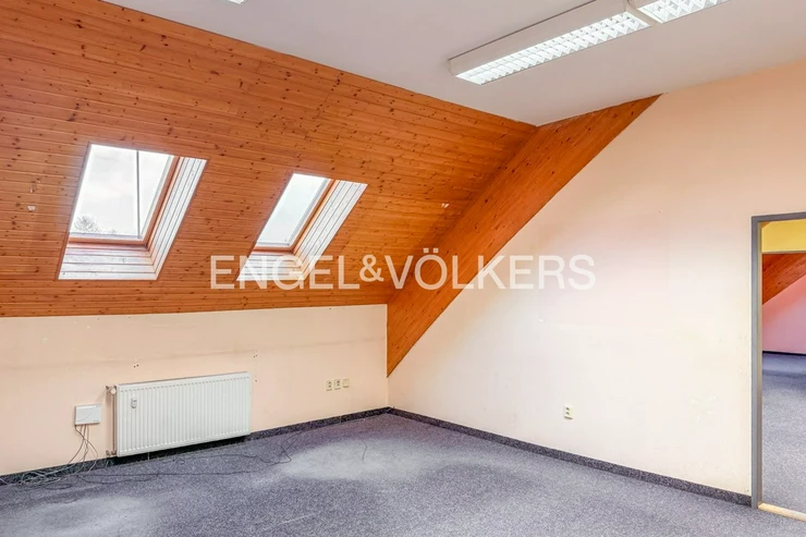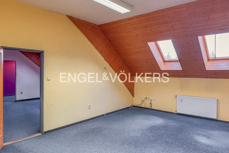 We offer office space for rent in a beautiful, modern complex in the village of Jeneč in the Prague-West district. The office space with a total area of 116 m² is located on the first floor of the building and consists of four interconnected offices. The layout allows for division into two separate units, each with an area of 58 m². Shared bathroom facilities are available.