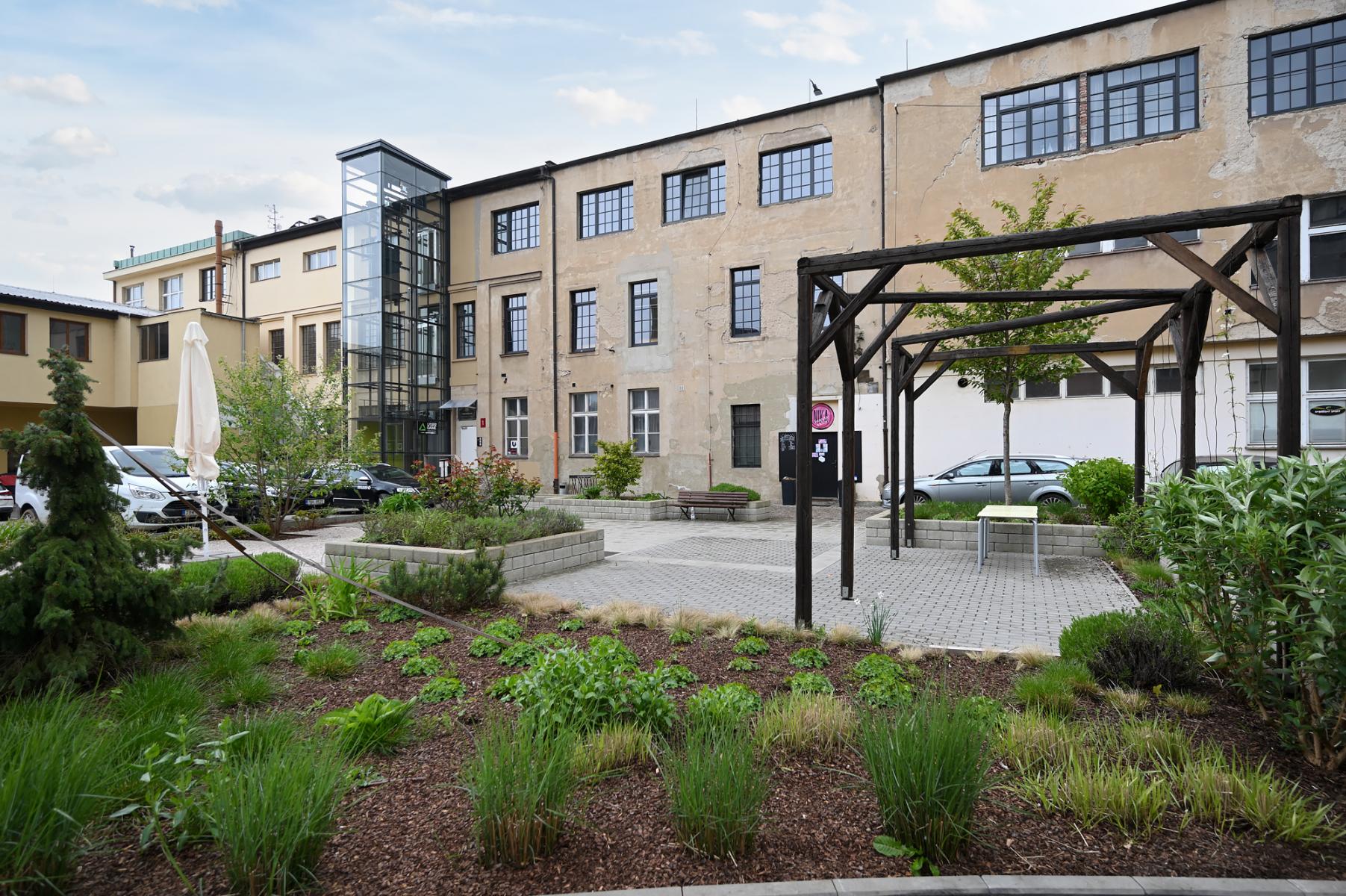 Design non-residential space approved as an office, possible to rent as tatoo studio, cosmetic saloon, gallery, showroom, located in the multifunctional building of the Pilnáček factory in the center of Hradec Králové.