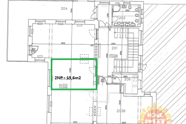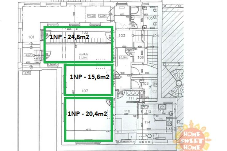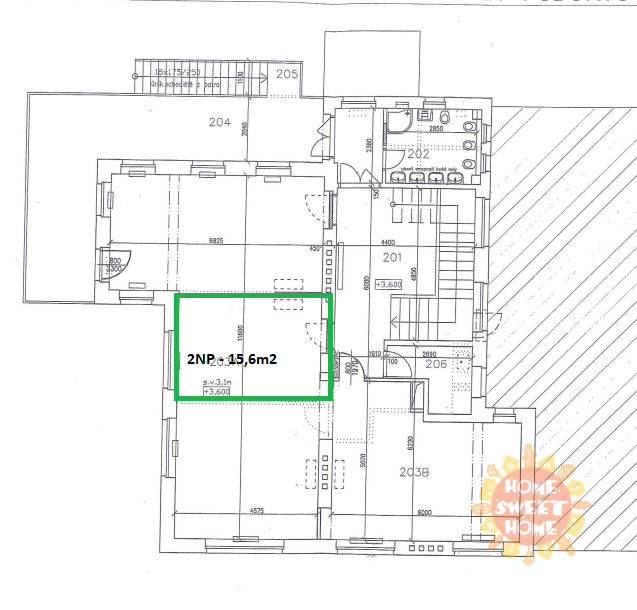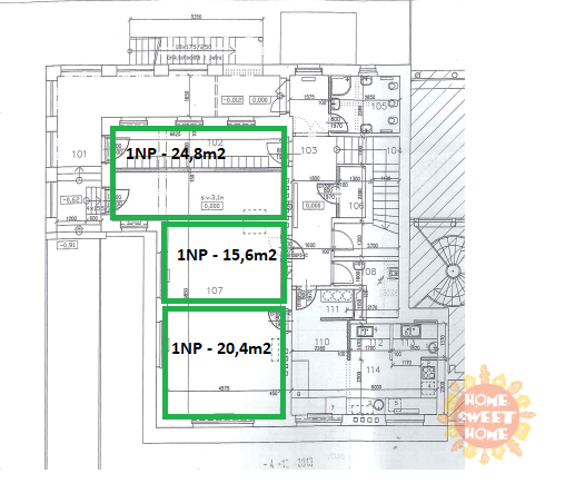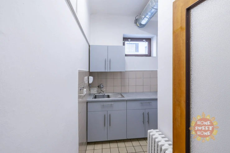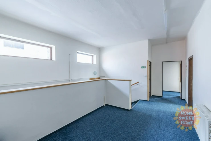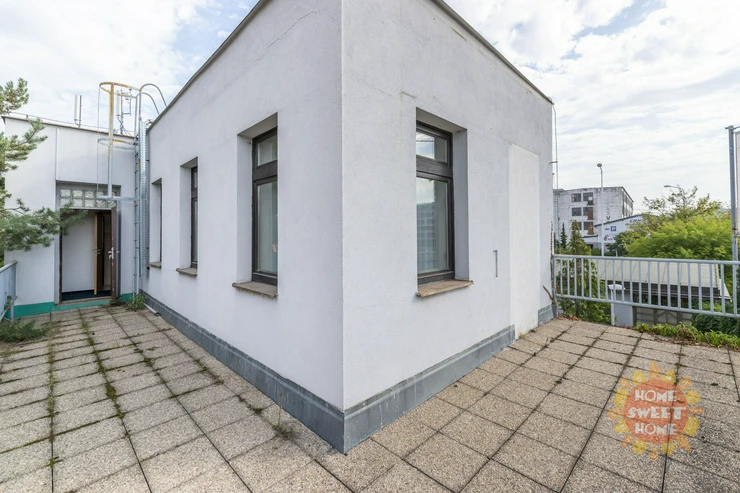 Currently, three other separate offices are available: 1x 24.8 m² and 2x 15.6 m². Each office can be equipped with a desk, chair, and cabinet. There is a shared kitchen, toilets with a shower, and a terrace on the floor. There are a sufficient number of parking spaces on the premises, with one parking space available for rent for CZK 2,000/month. The parking lot is located directly in front of the building.