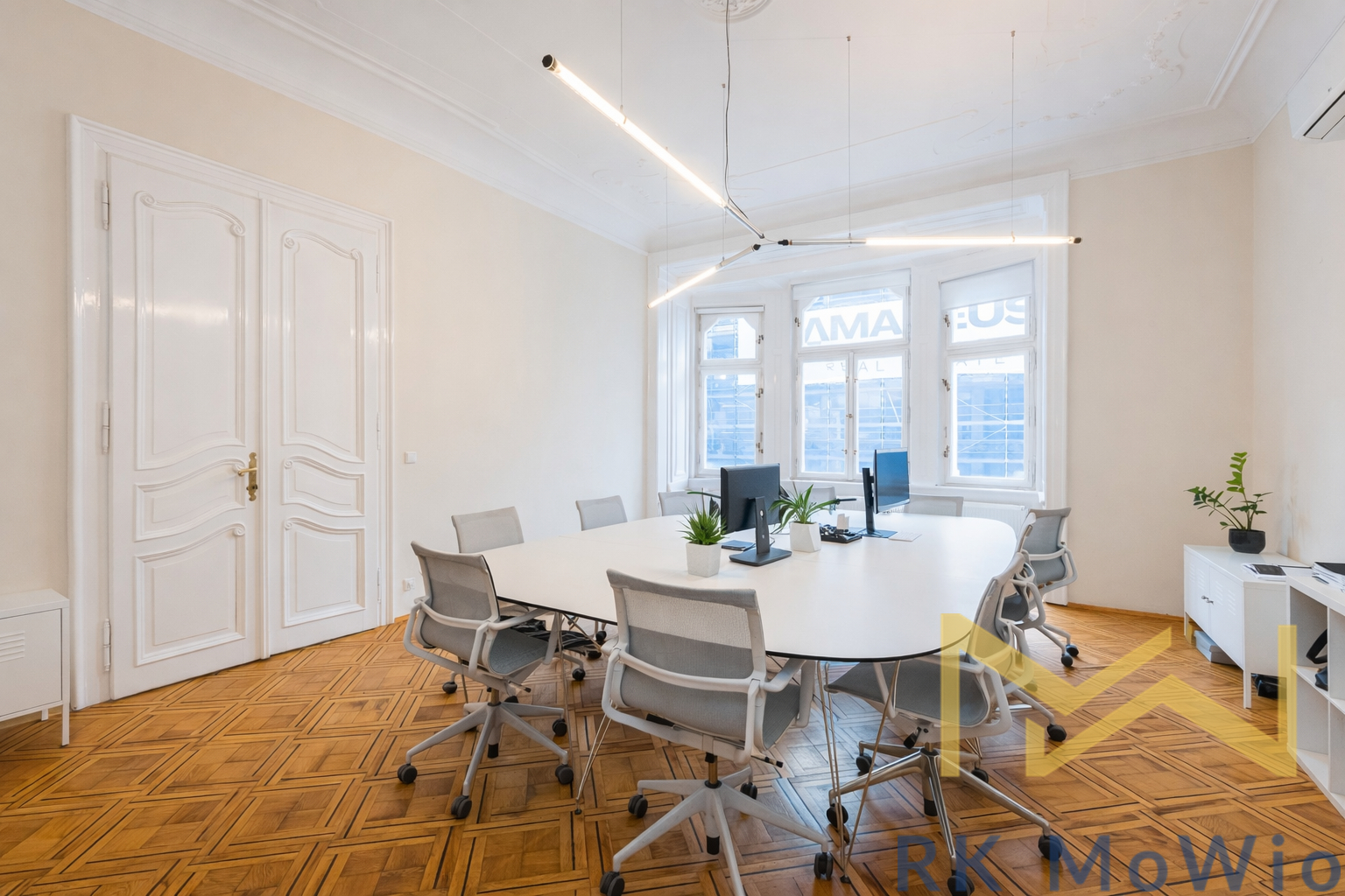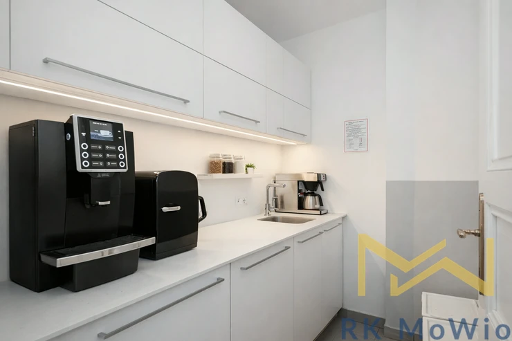 The layout includes several separate offices of various sizes, a meeting room, a lounge/day room, storage/archive, a server room, a kitchenette, corridors and full sanitary facilities (toilets for men and women). The premises also feature an entrance reception area that allows comfortable reception of clients and employees. The space is suitable for a company headquarters, law firm, architectural studio, consulting firm or other administrative use.