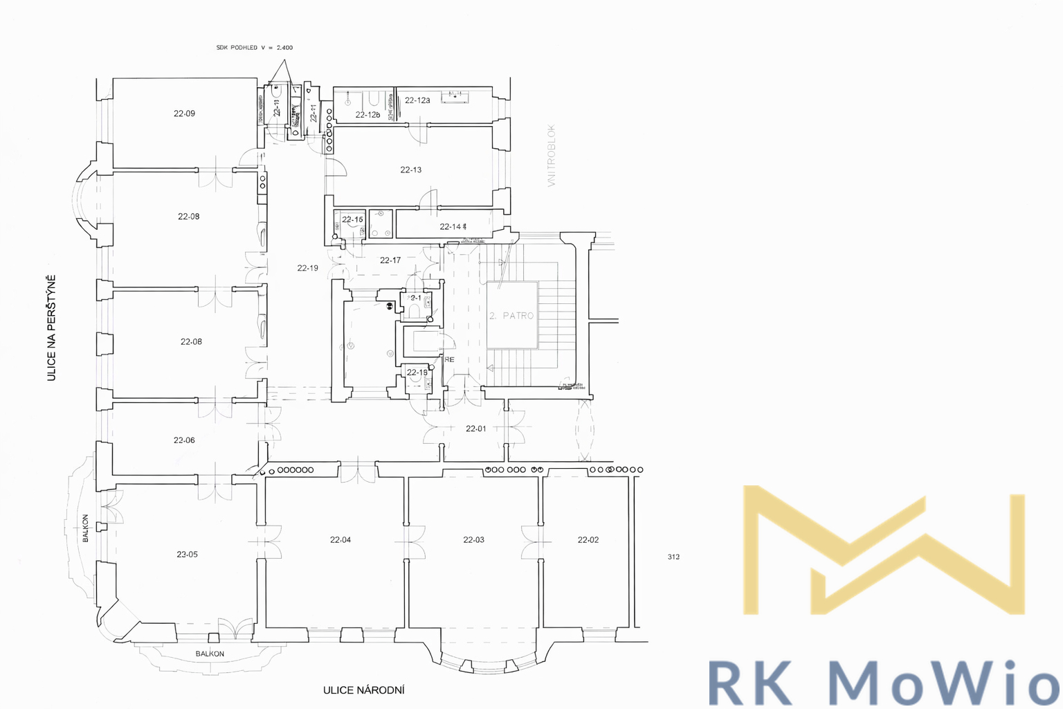 We offer for rent representative office premises with a total area of 319 sqm, situated on the 2nd floor (3rd above-ground level) of a historic building on Na Perštýně Street, Prague 1 – Old Town.