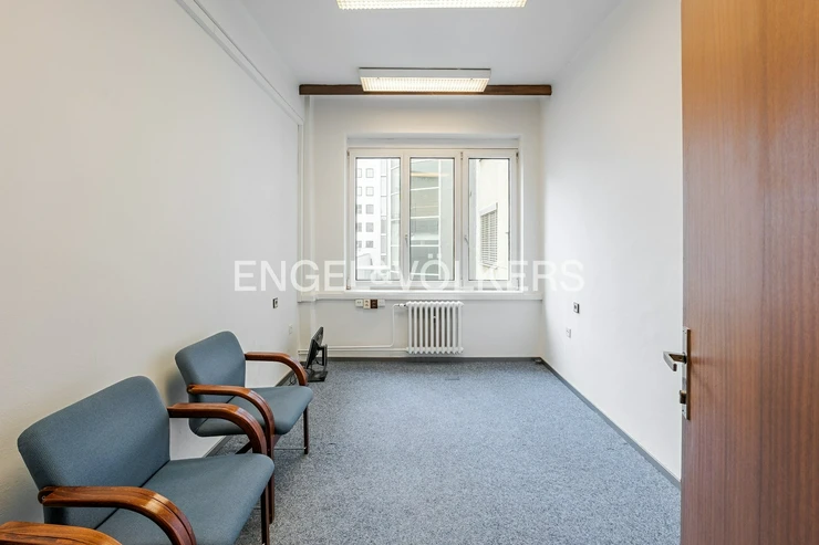 We offer for immediate rent office space with an area of 154 sqm in the desirable and growing location of Prague 8 – Karlín. The building is located in close proximity to metro line B and the Křižíkova tram stop. The premises are on the 2nd floor, accessible via a separate entrance with a reception and an elevator. There are six independent offices ranging in size from 12 sqm to 25 sqm, featuring an established PC network, their own kitchenette, and sanitary facilities. The area offers excellent public amenities. For more information, please contact the agent.