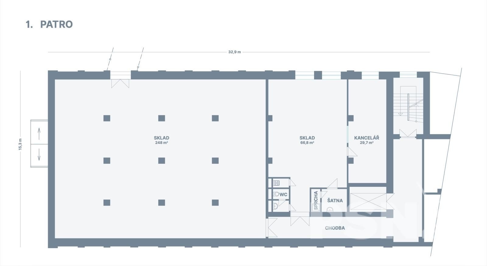 Nabízíme k pronájmu celé 2.NP s vlastním zázemím, v hale s nákladním výtahem, určené ke skladování či výrobě. Hala má samostatný vstup i vjezd na vlastní pozemek, který nabízí dostatečný manipulační prostor pro zásobování.