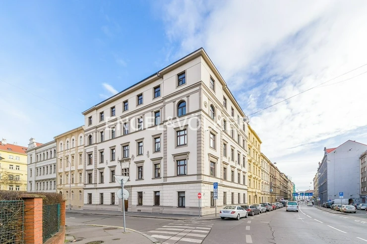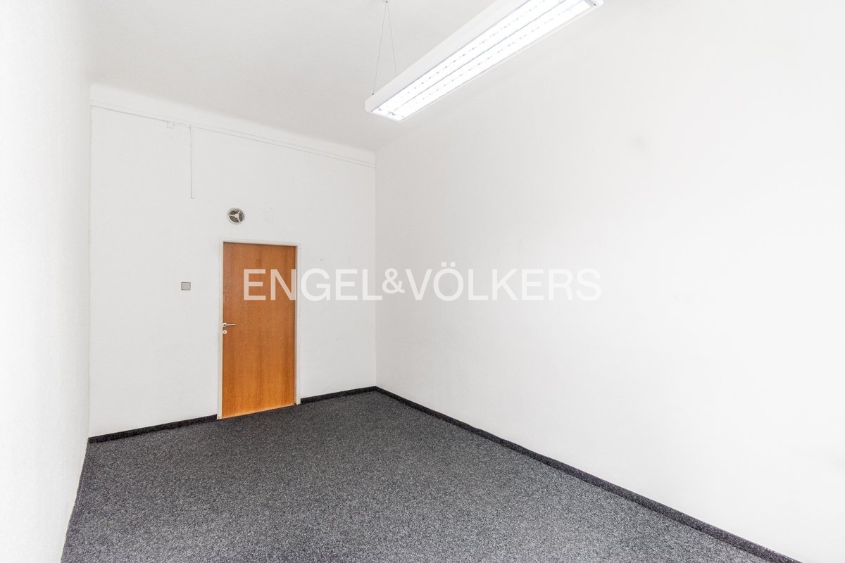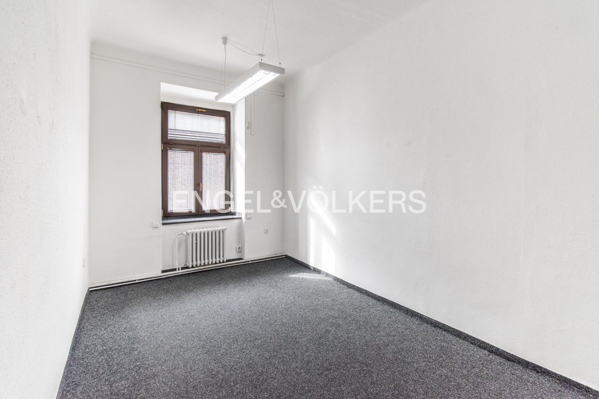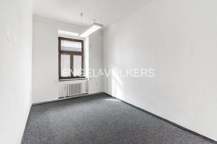 Office space near the Nový Smíchov shopping center. This is a single room with an area of 14.75 sqm and windows facing Duškova Street.