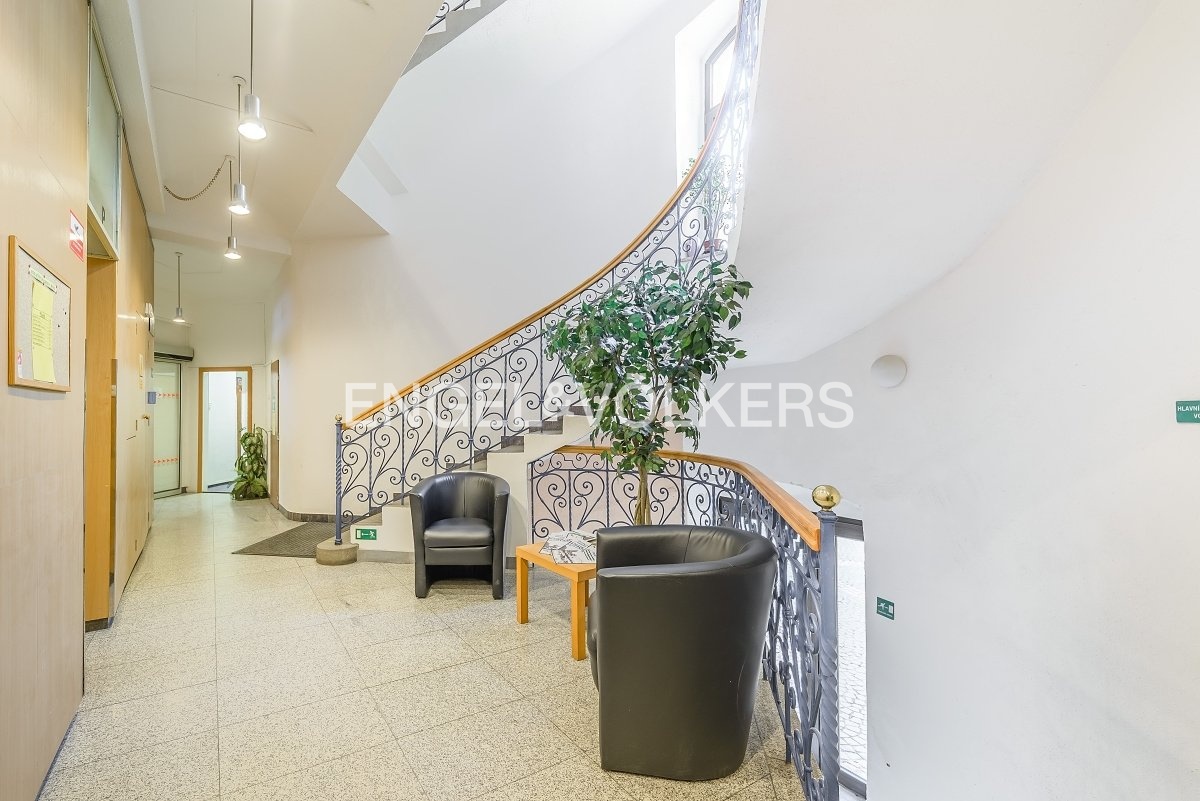 The building features a reception available on weekdays from 7:30 AM to 6:30 PM, and entry to the building is via chip access. Excellent public transport accessibility, with the Bertramka tram stop located nearby. There is an option to rent a meeting room for up to 15 people.