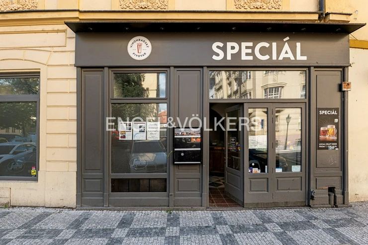 We offer for rent unique non-residential premises with a restaurant licence, located in a listed apartment building in the heart of the Old Town. The property is located in a busy tourist area with high foot traffic. The premises are awaiting renovation, which allows the new tenant to adapt them according to their own concept. The premises have a total usable area of approximately 473.5 m² and are spread over two floors (ground floor and 1st underground floor). The entrance is directly from the street into a spacious restaurant with a bar and vaulted ceilings. On the ground floor, there are also several lounges, kitchen facilities, cloakrooms and storage rooms. In the basement, there are unique cellar rooms with stone vaults, ideal for a wine bar or club space, and other technical and storage rooms.