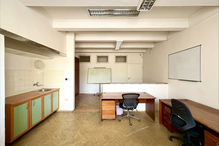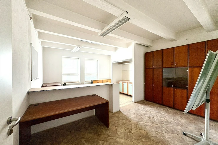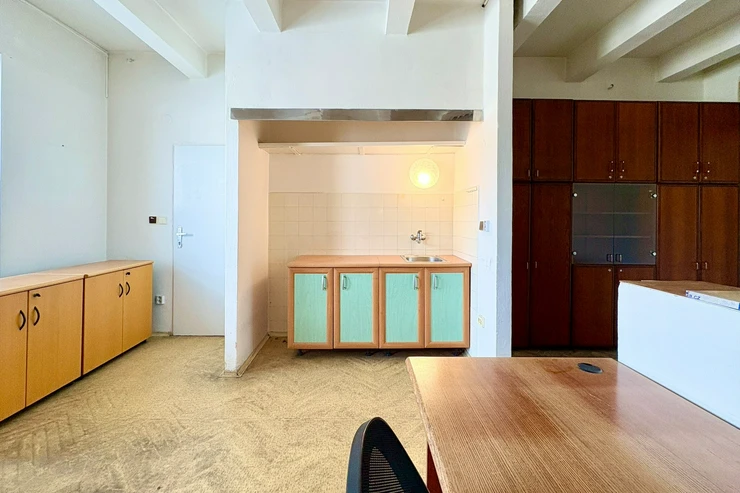 Kancelář je vybavena základním nábytkem, který může po dohodě zůstat k využití. Součástí prostoru kanceláře je také vlastní kuchyňka.