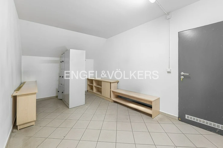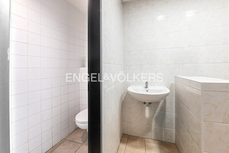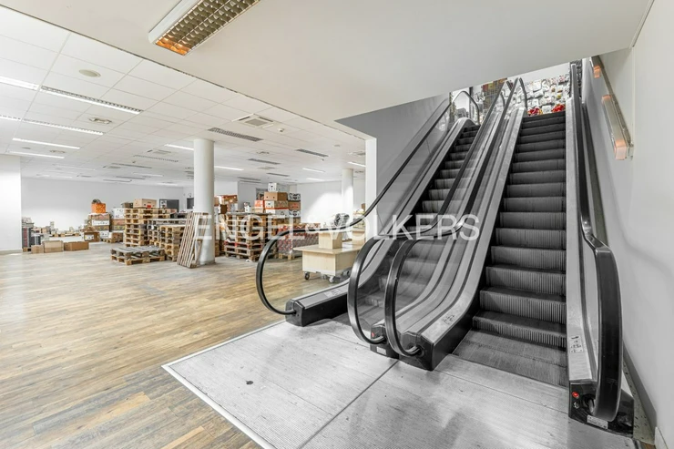 The space is divided into two floors – the ground floor and the 1st underground, which are connected by escalators. The unit also includes storage space with a freight elevator. Facilities such as toilets, showers and changing rooms for employees are a matter of course. The unit is approved for retail use. There is ventilation and air conditioning.
